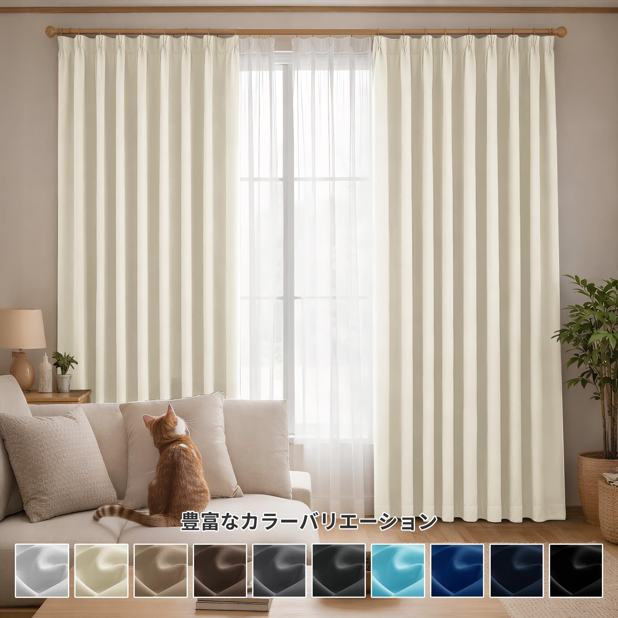 【断熱&防音効果】 厚みのある生地が外気の熱や冷気をブロック。エアコン効率を高め、省エネにも貢献します。さらに室内外の音を和らげ、静かな空間を保ちます。