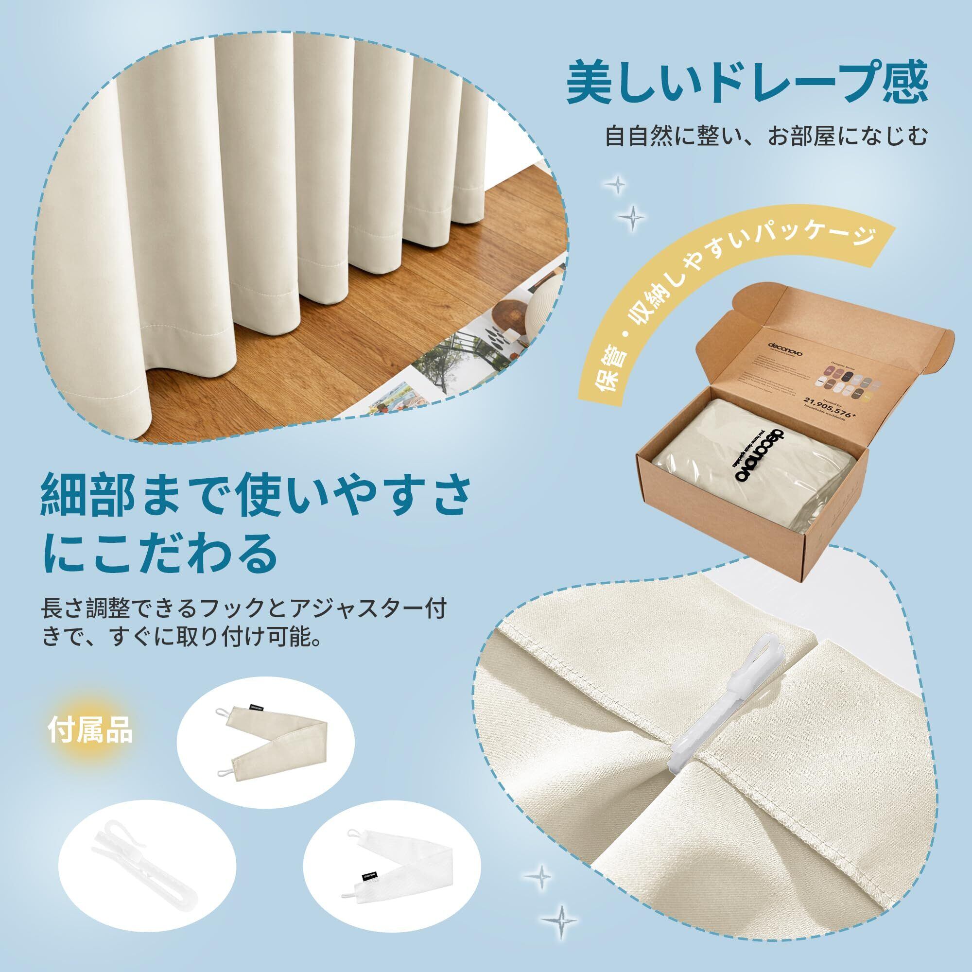 Deconovo カーテン 4枚組 遮光カーテン+レースカーテン 4セット 幅100cmx丈135cm ポリエステル製 断熱 防音 UVカット 洗濯可 おしゃれ 北欧風 寝室 リビング対応 ライトベージュ