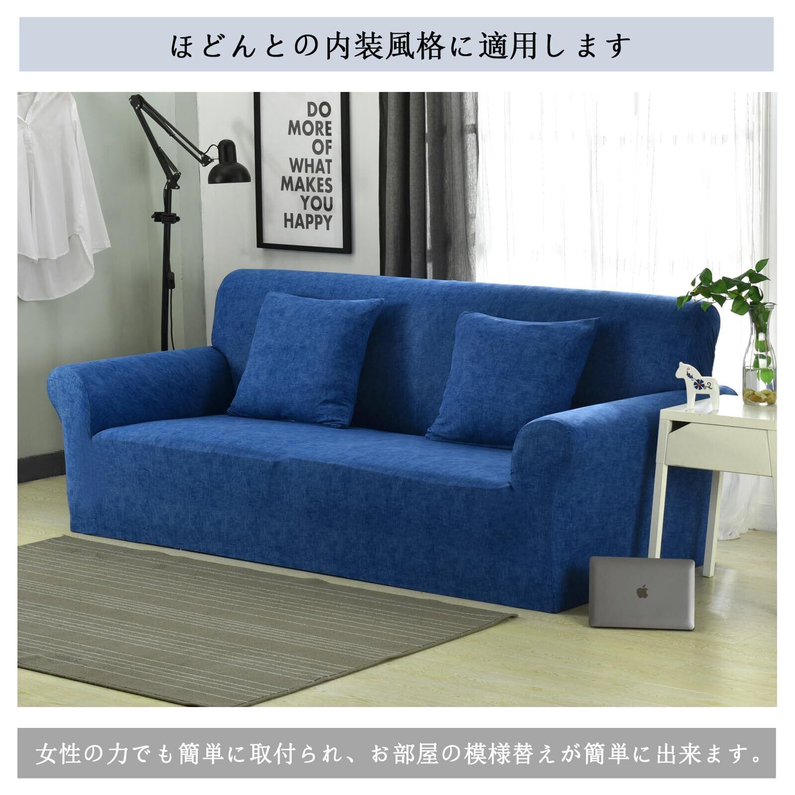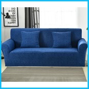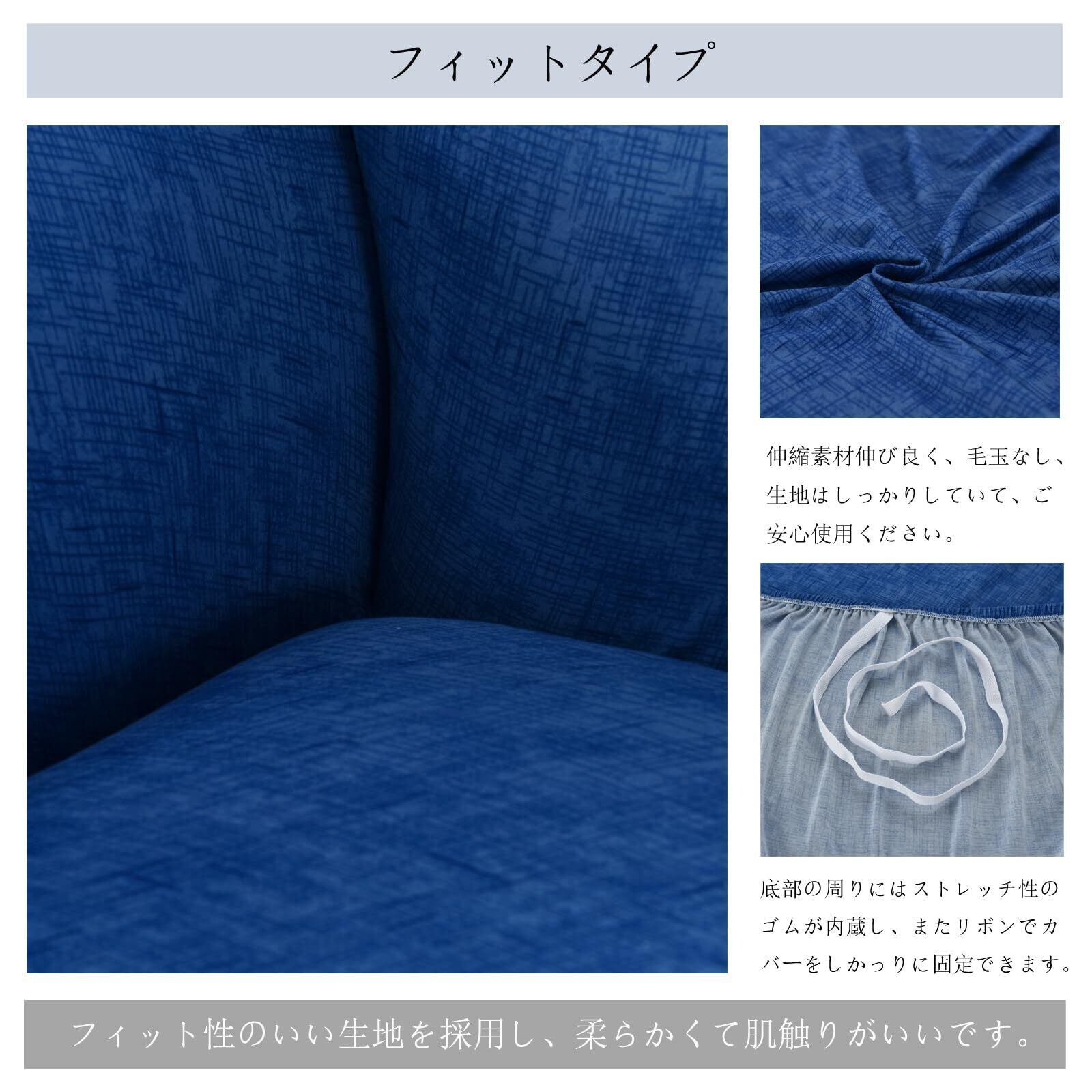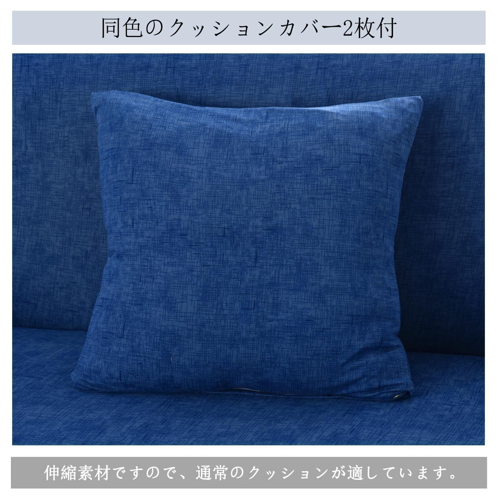 ソファーカバー 3人掛け 肘付き 無地 クッションカバー2枚付 北欧風 ストレッチ フィットタイプ 伸縮素材 滑り止め 柔らかい キズ防止 犬 猫 傷 防止 四季適用 超便利 (ブルー)