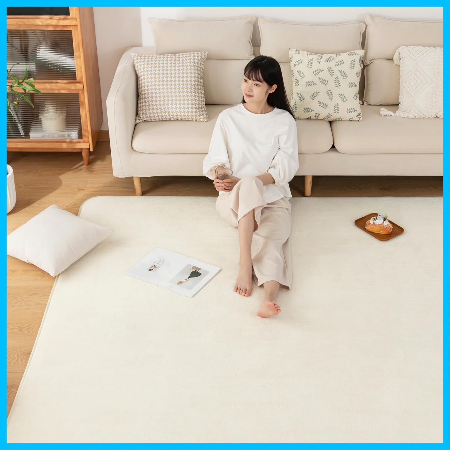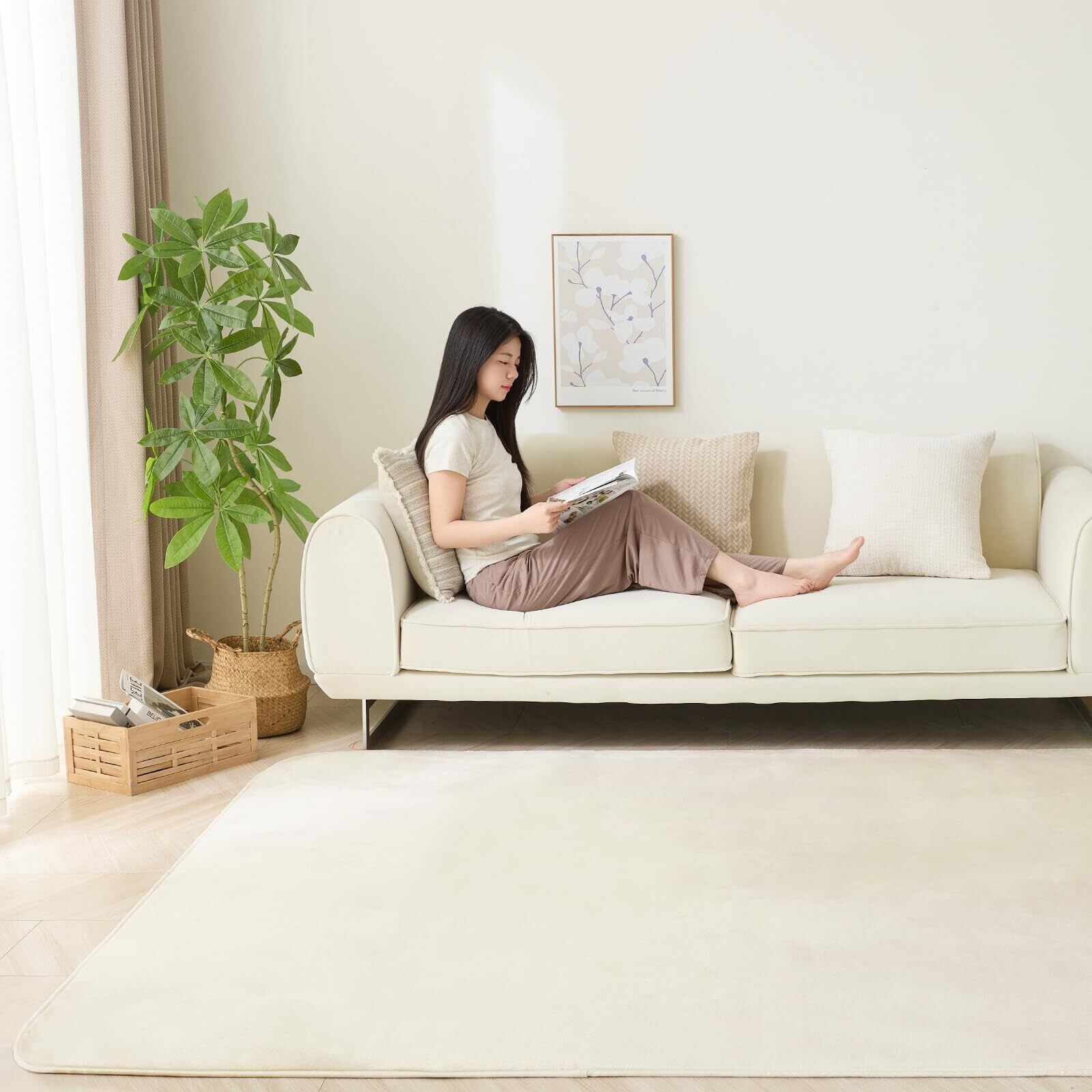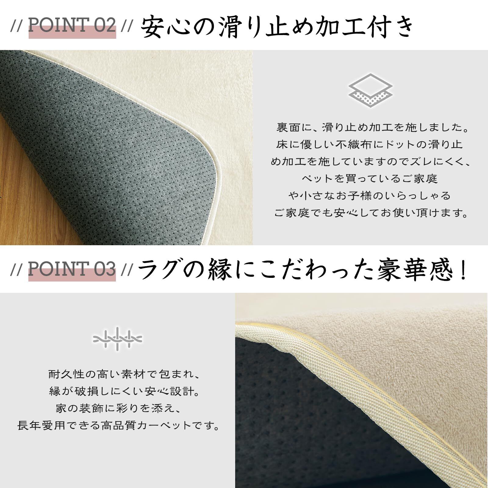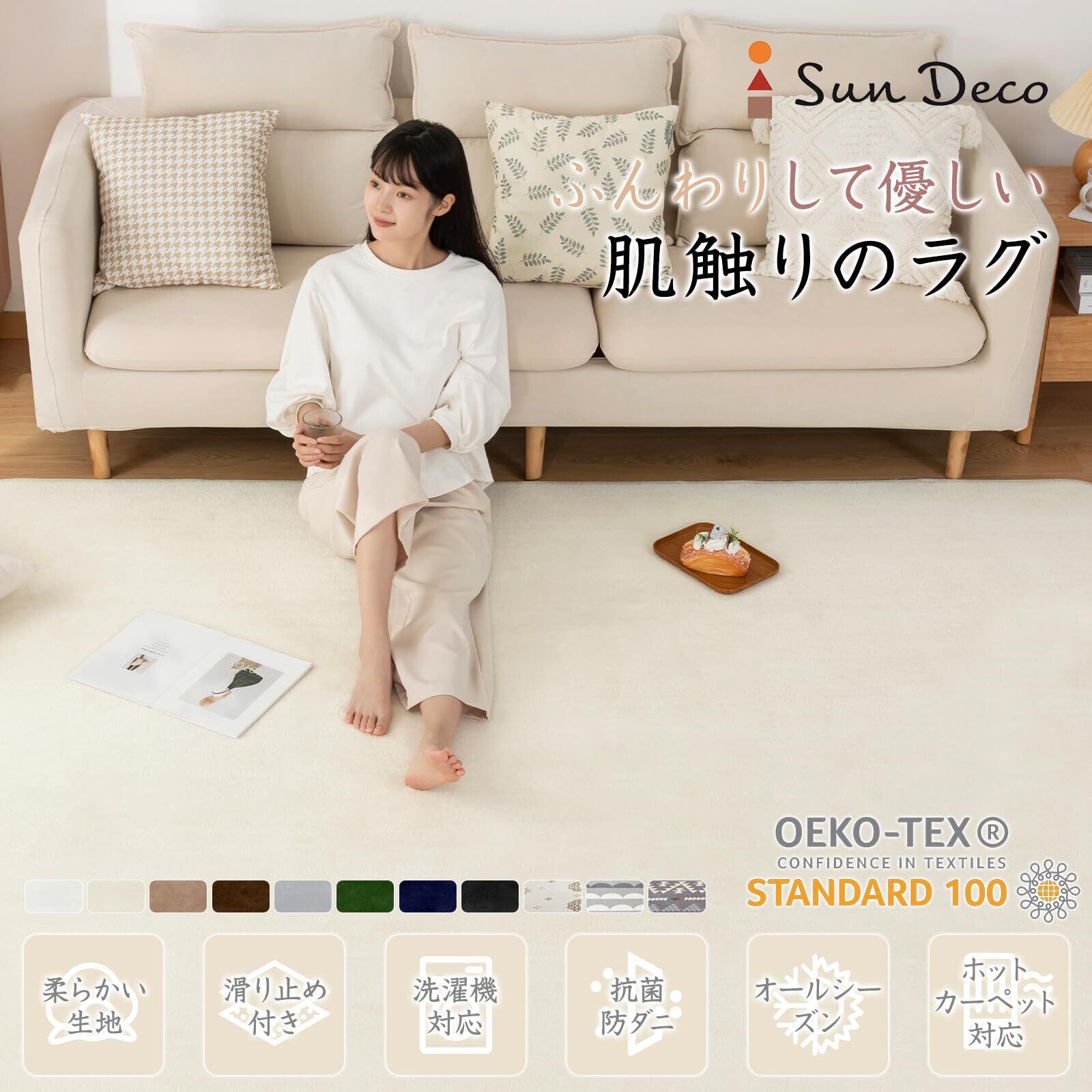 Sun Deco カーペットラグ 洗えるラグマット 絨毯 135×185cm(約1.5畳) 抗菌 防臭 防ダニ 滑り止め付き オールシーズン 床暖房 ホットカーペット対応 丸洗い フランネル 無地・アイボリー