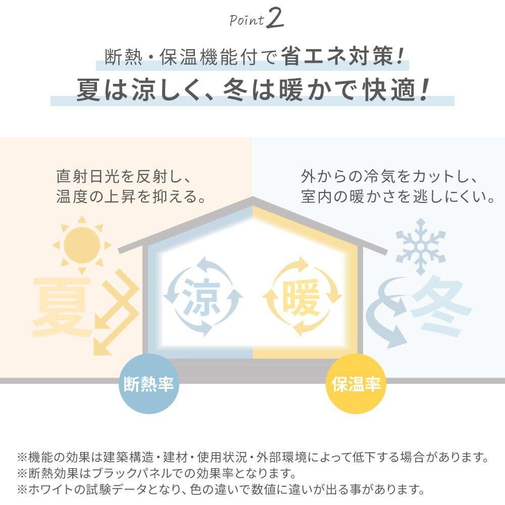 【断熱保温機能で、カーテンを開けても快適】昼厚地のカーテンを開けてもしっかり対策出来て、さらに1年を通して冷暖房の効果が高まり、夏は冷房、冬は暖房効果の効率アップ!気になる電気代にもアプローチ出来ます。