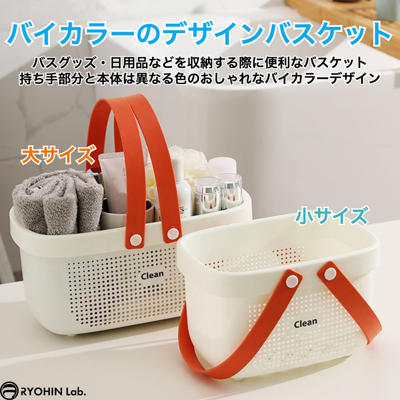 【バイカラーのデザインバスケット】バスグッズ・日用品・化粧品・衣類などを収納する際に便利なバスケットです。持ち手部分は本体とは異なる色でおしゃれなバイカラーデザイン。