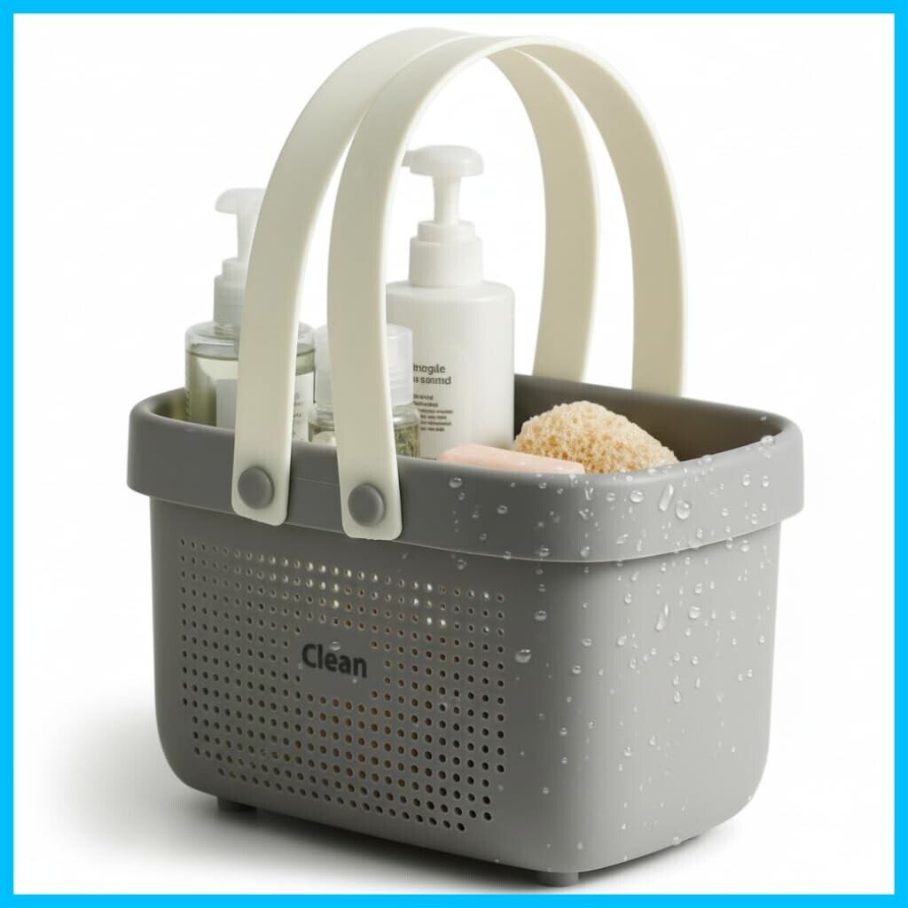 RYOHIN Lab. バスケット 洗面用具収納 シャワーかご ランドリー 手提げ 水切り 軽量 小さめ 温泉・銭湯・ジム通いに (グレー, 小)