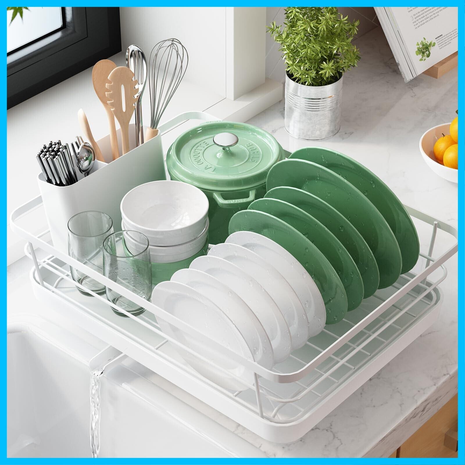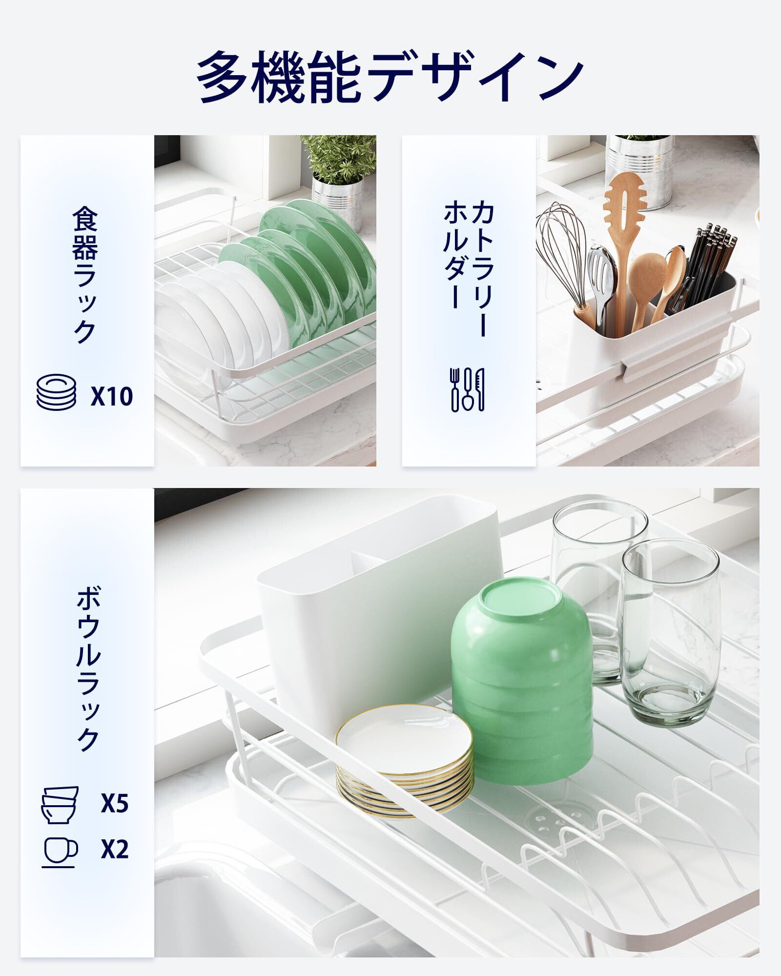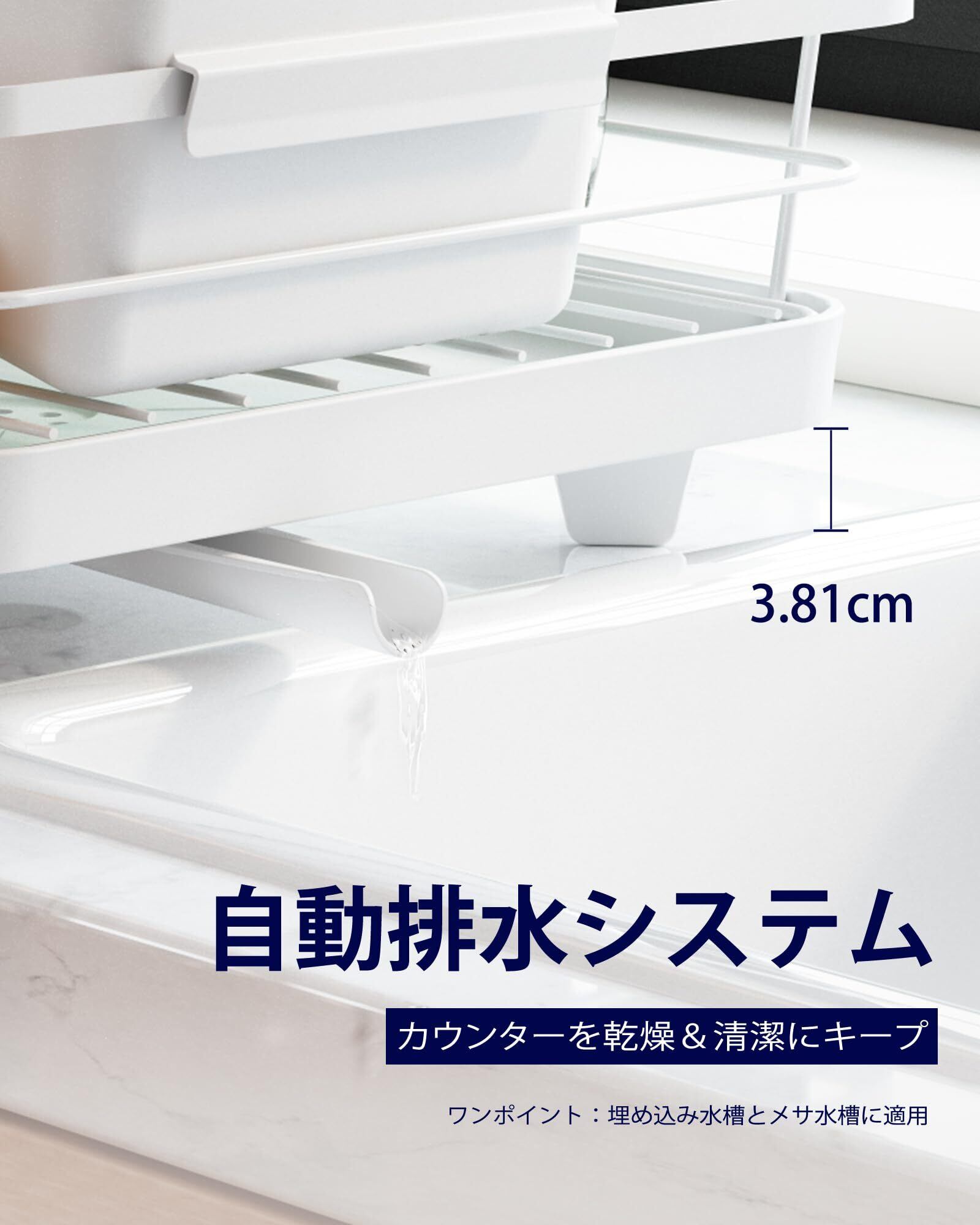Kitsure 食器水切りラック - スペース節約型の水切りかご カトラリーボックス付き食器乾燥ラック 奥行き30.5cm×幅39.6cm ホワイト