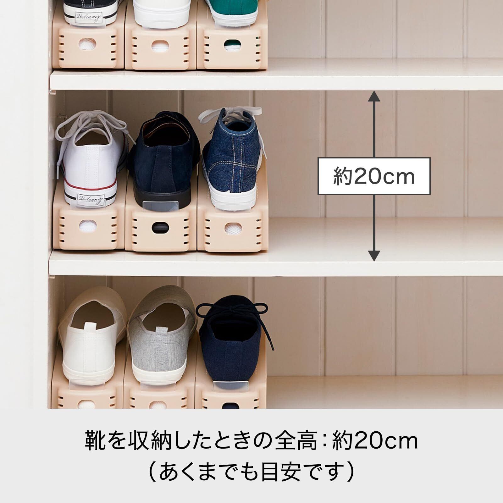 1足分のスペースに2足収納でき、収納量が約2倍にアップ。