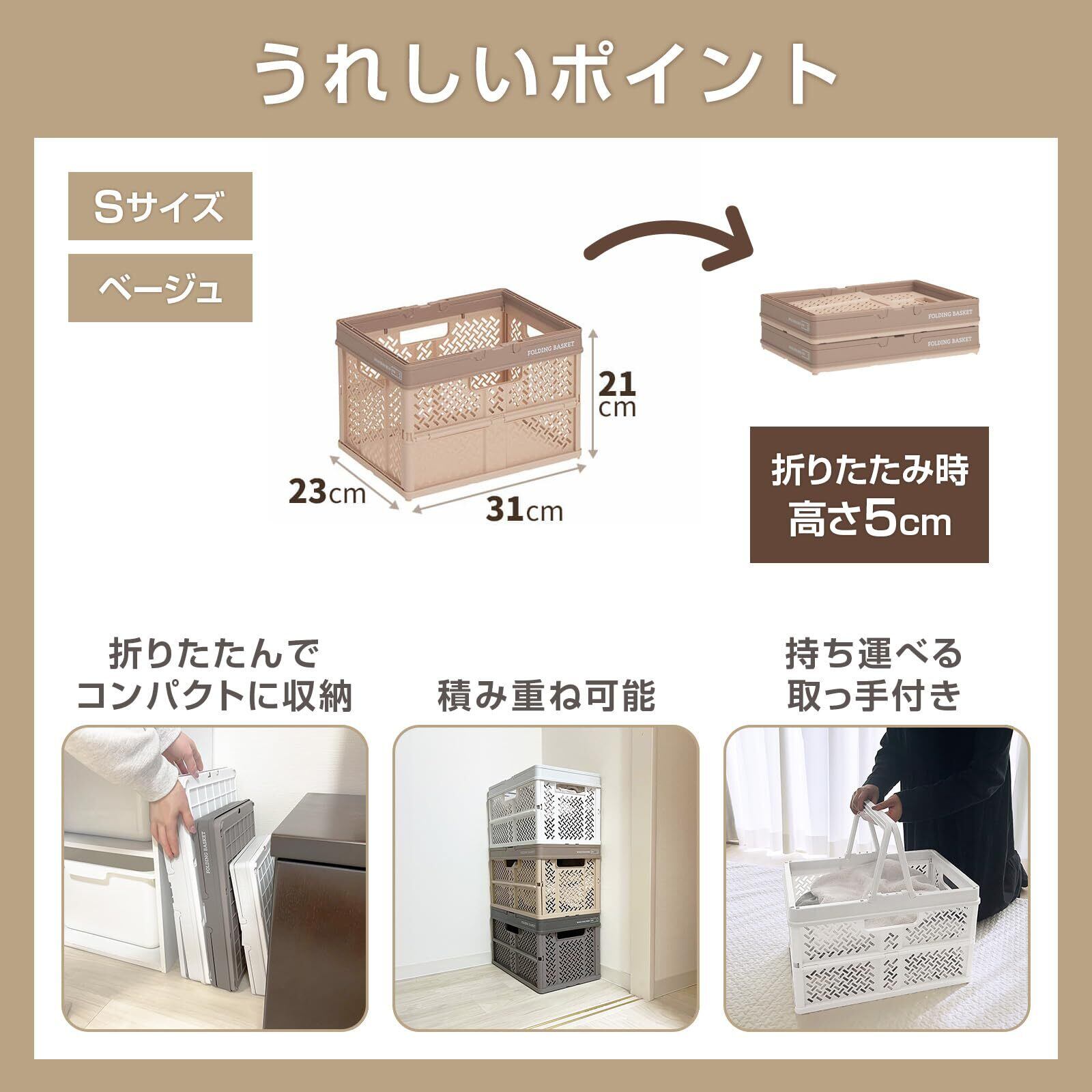 天馬(Tenma) 折りたたんでコンパクトになる持ち手付きの収納ボックス 完成品 折りたたみバスケット Sサイズ お部屋に馴染むデザインの折り畳みコンテナ オリコン カゴ B5ファイルがぴったりのバスケット プラスチック