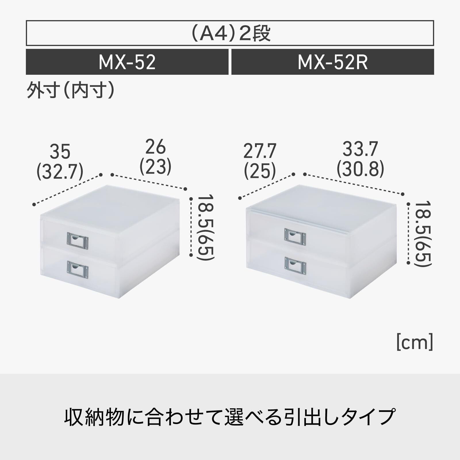 ライクイット (like-it) 収納ケース A4 引き出し 書類ケース 縦型 2段 幅26×奥35×高18.5cm ホワイト (半透明) 日本製 MX-52 シリーズ累計販売数1,000万個突破 ファイルユニット 書類収納ボックス 文具収納 卓上収納 工具収納 梱包資材