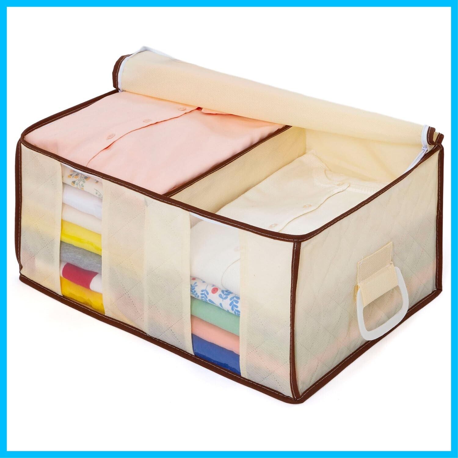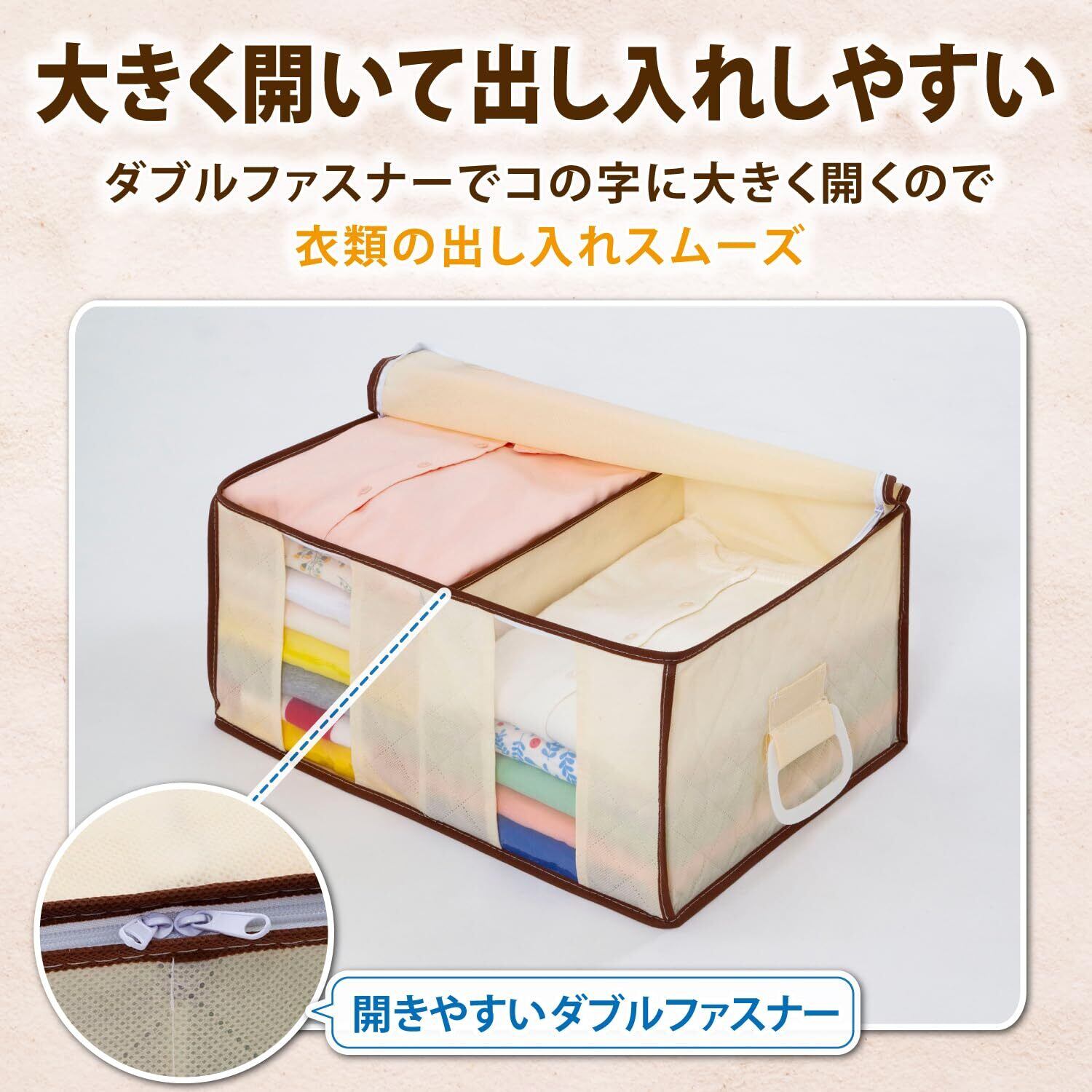 アストロ 衣類収納ケース 仕切り1か所付き 通気性の良い不織布がホコリなどの汚れをガード 仕切り付きで衣類が崩れにくい 持ち運びしやすい持ち手付き 洋服 収納ボックス 衣装ケース 収納袋 クローゼット 押し入れ収納 ベージュ 130-34