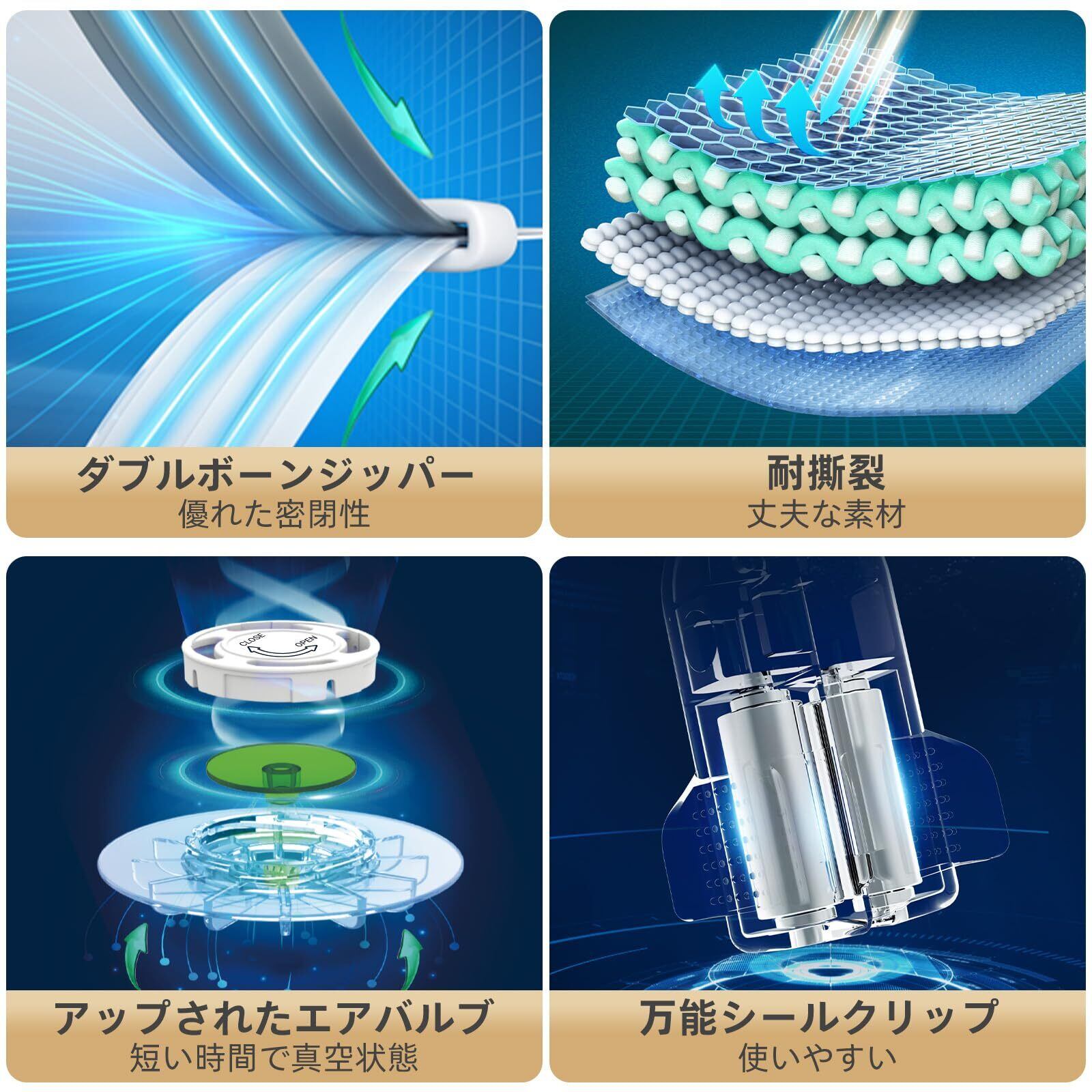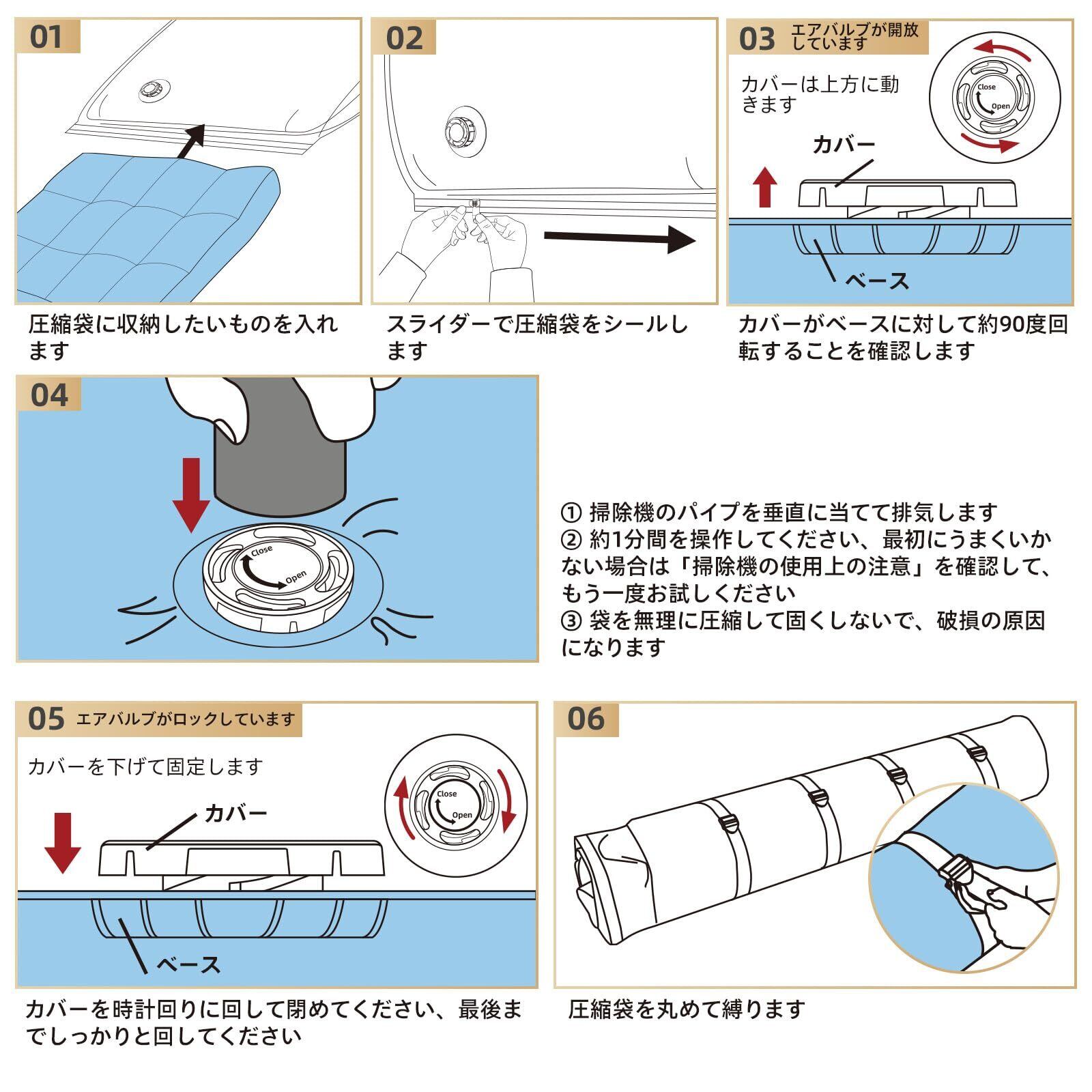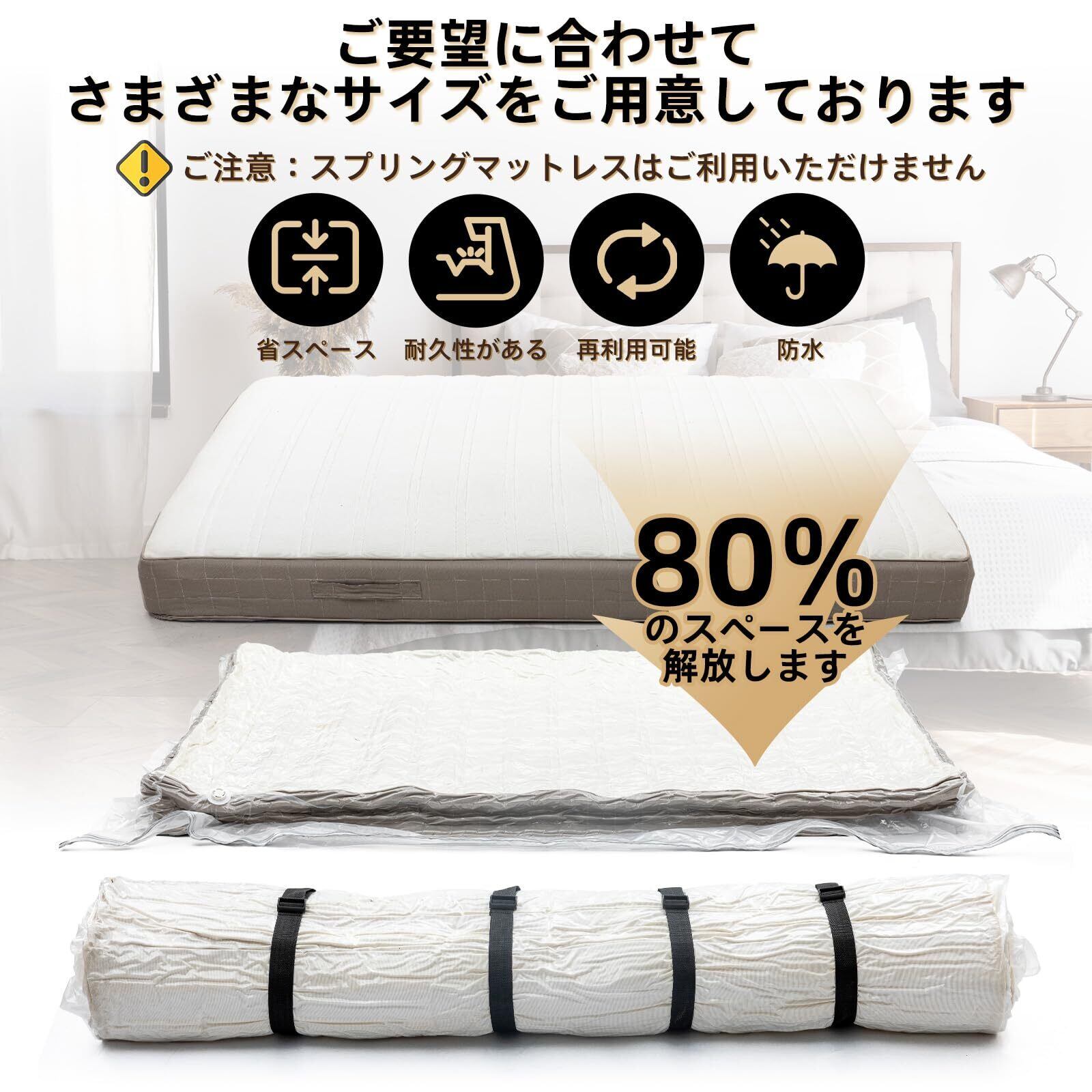 特徴 防水, 空気漏れ防止, 再利用可能, 空気漏れ防止, 防虫カビ防止, 防塵, スペースを80%節約できる