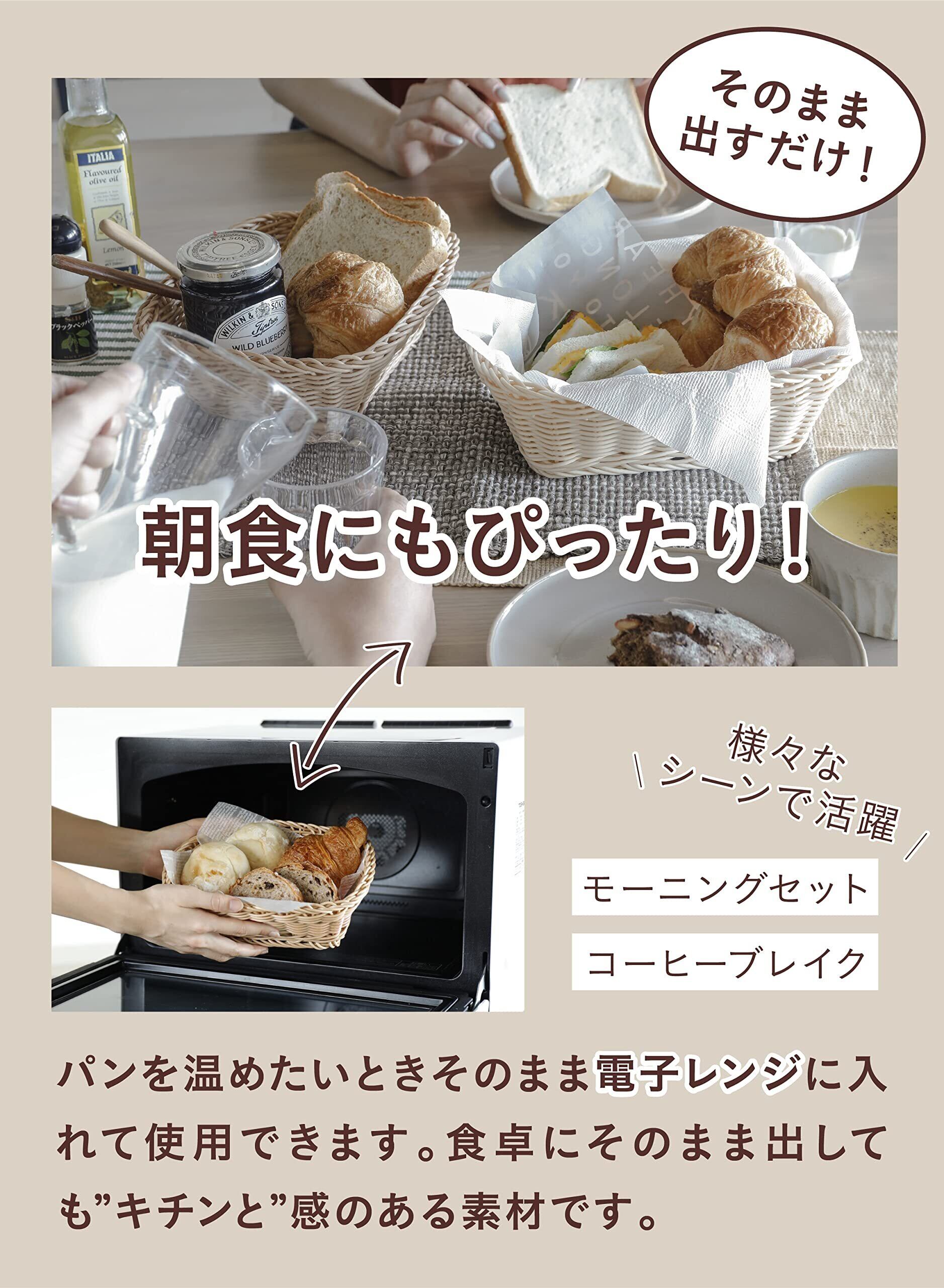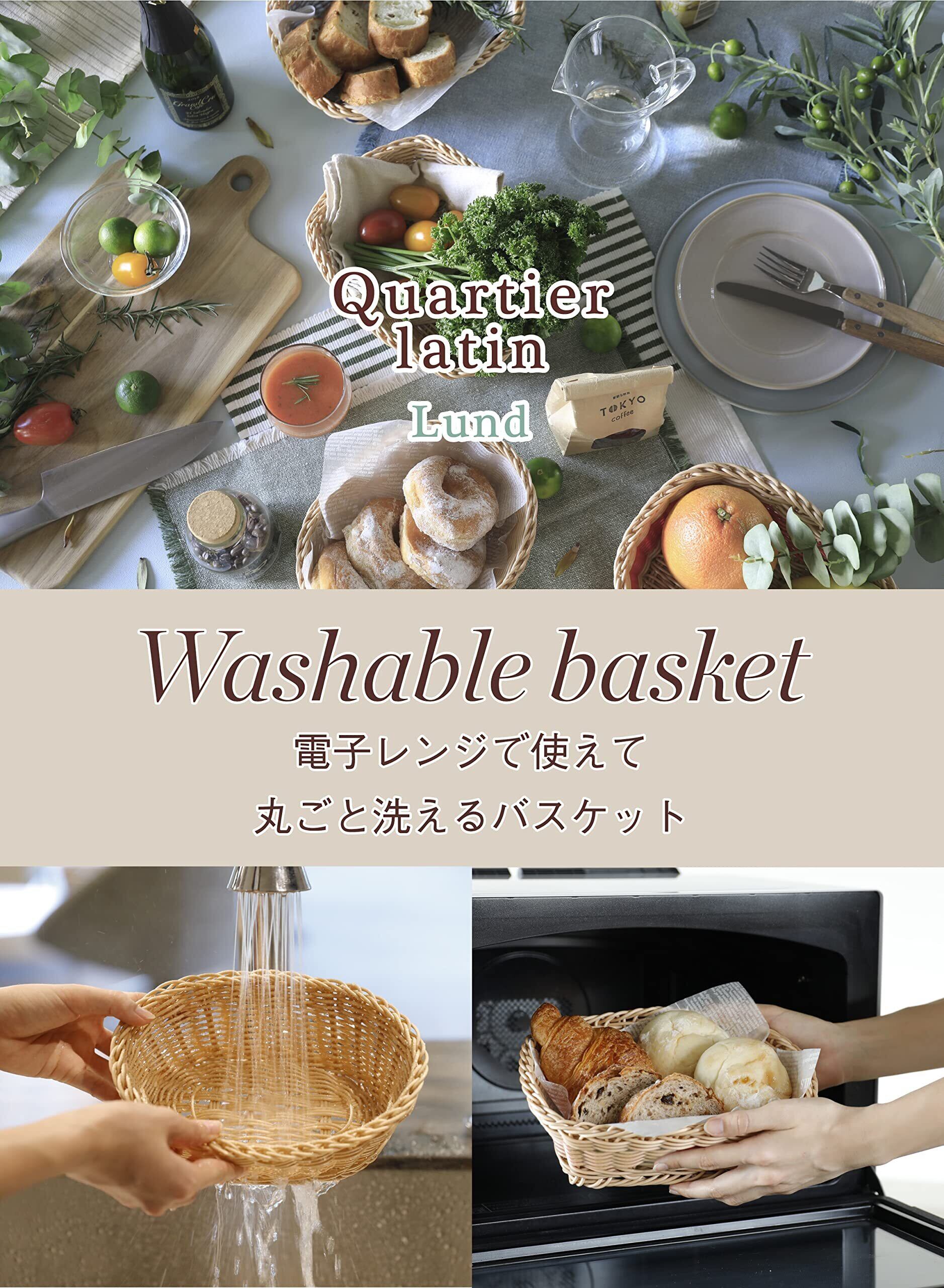 まるで本物の質感なのに、お手入れは簡単。パンやお菓子・調味料やカトラリーなどを入れるだけで、なんだか素敵な食卓に。毎日使いたくなる「洗えるバスケット ルンド」