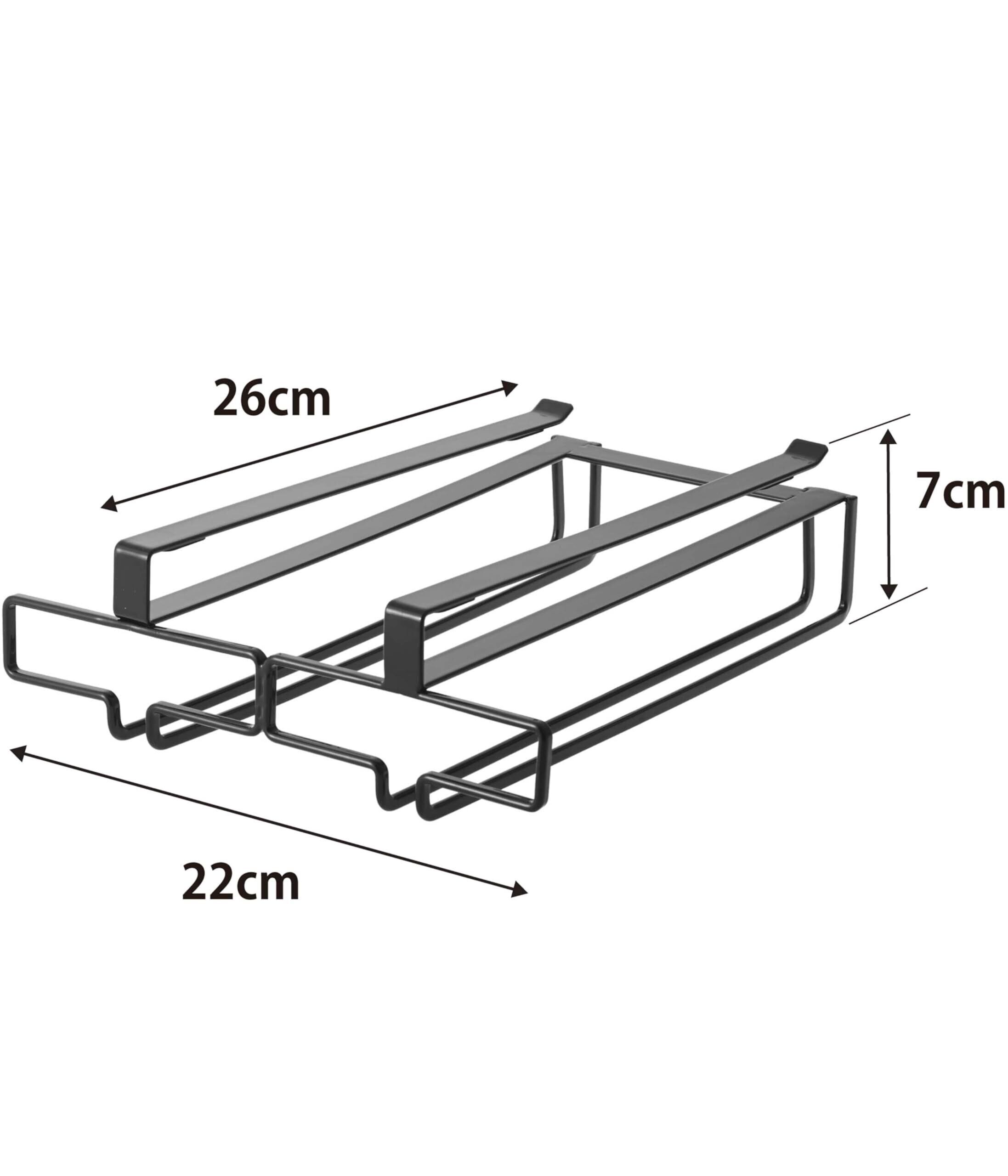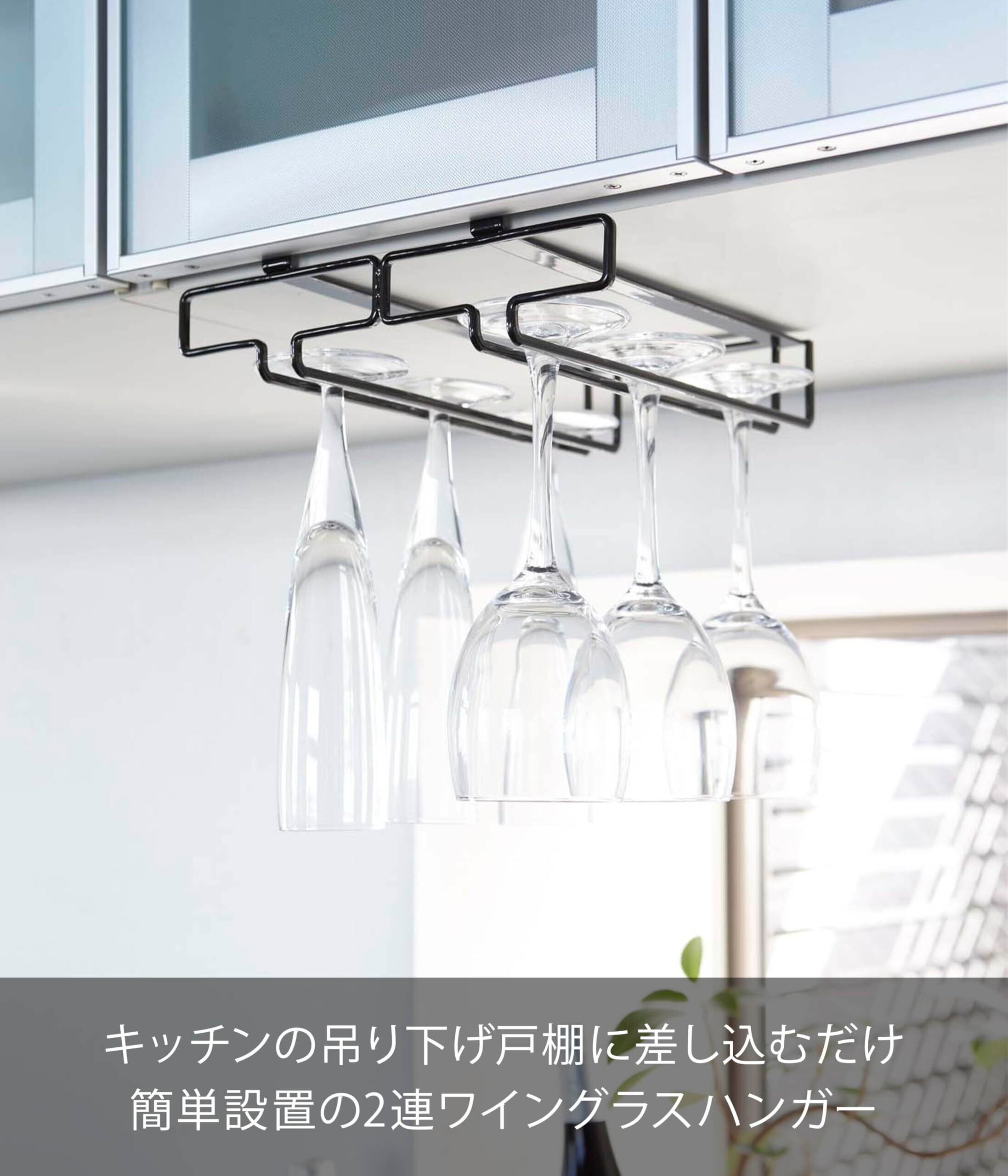 山崎実業(Yamazaki) 戸棚下 ワイングラスハンガー ダブル ブラック 約W22×D26×H7cm タワー tower 穴あけ・ネジ止め不要 キッチン 吊下げ 棚 2465