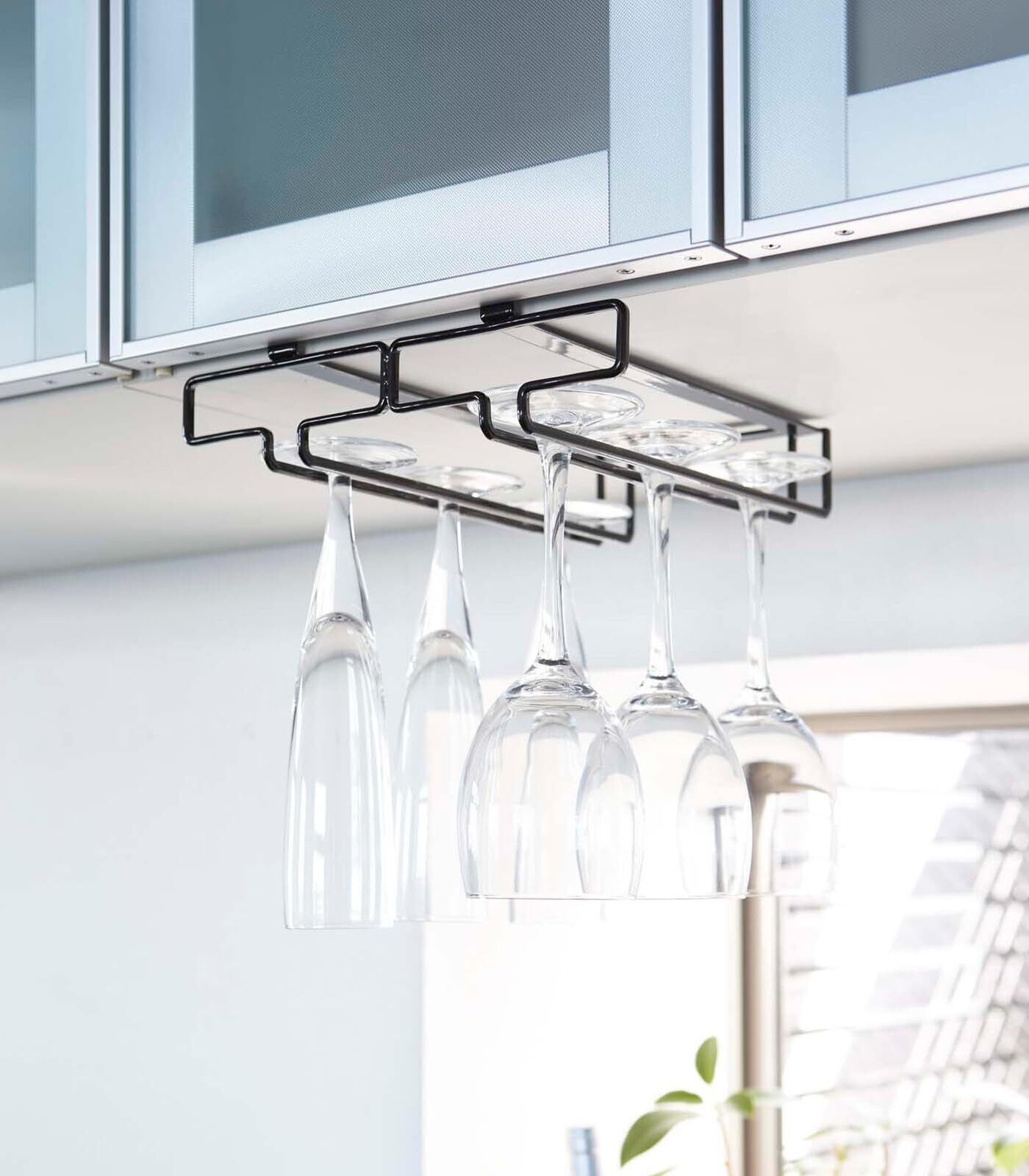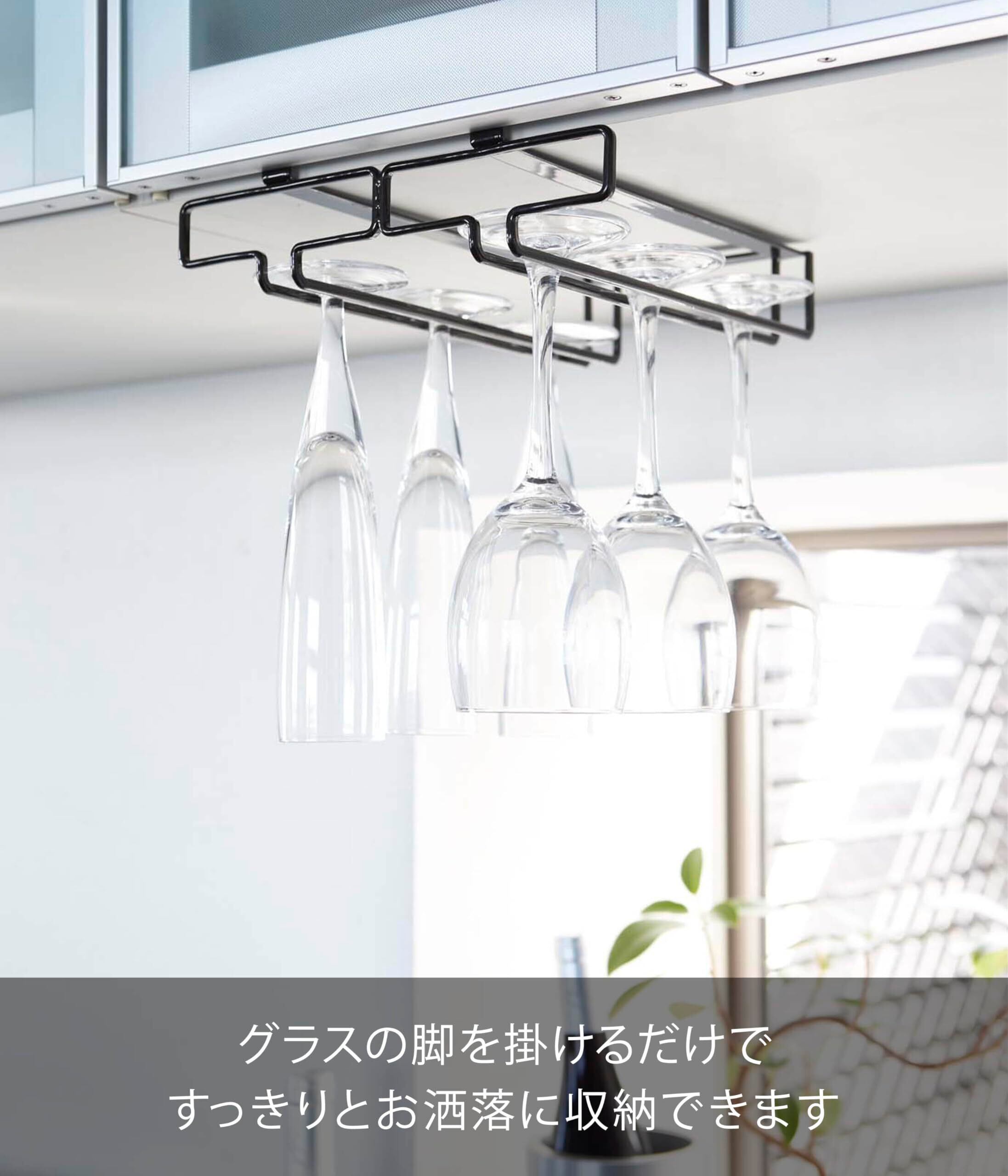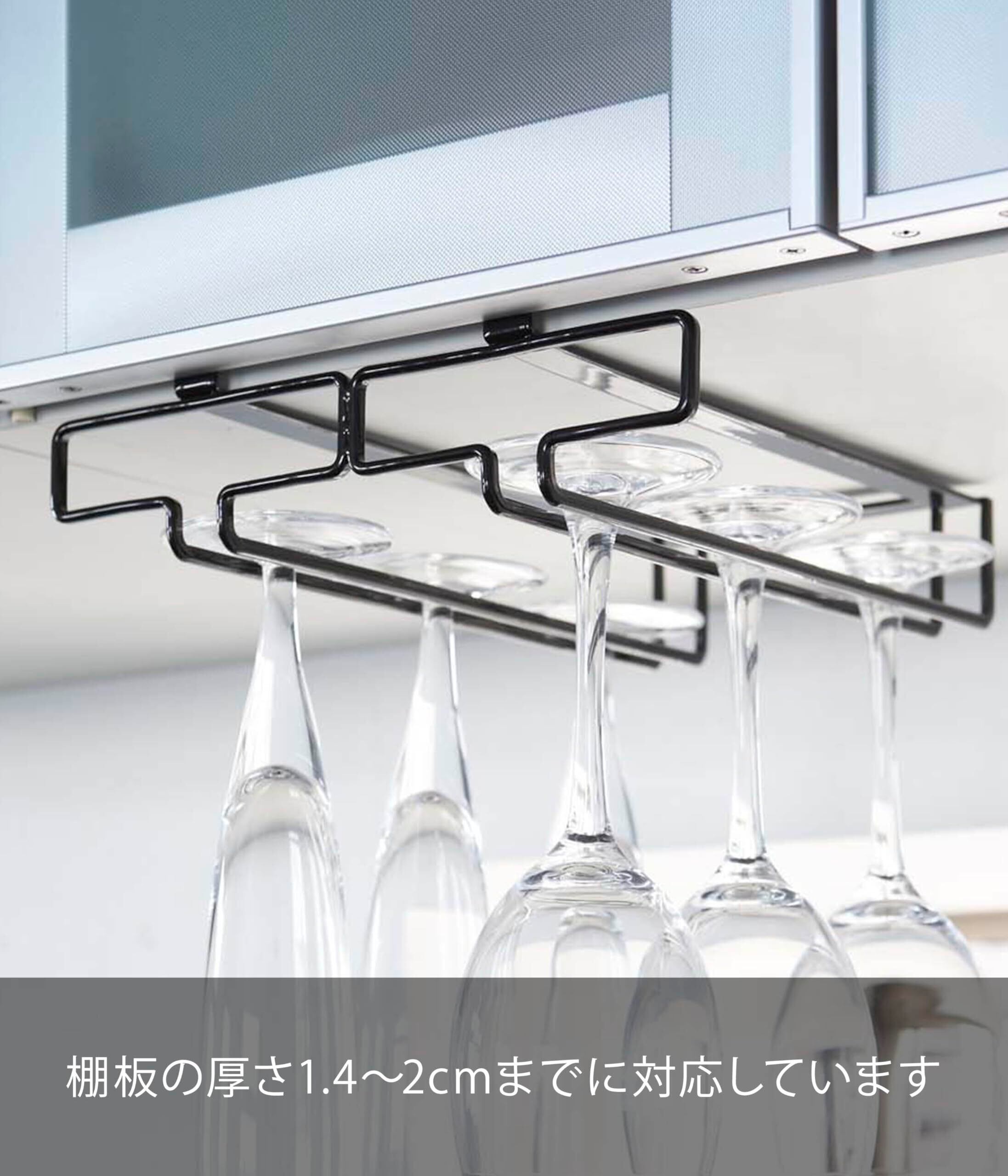 ●キッチン吊戸棚に取り付けるだけ。ワイングラスとシャンパングラスも収納可能