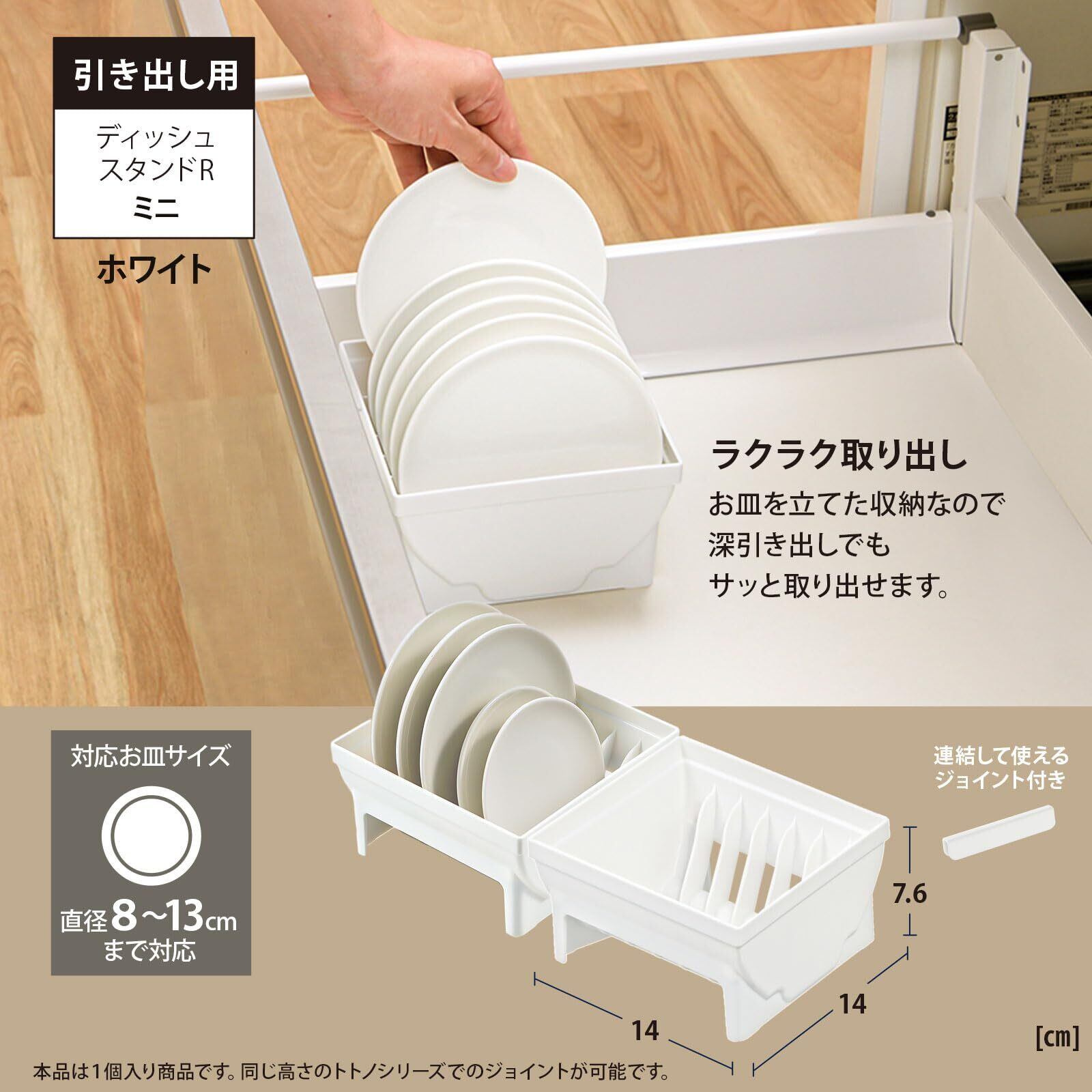 リッチェル キッチン収納 TOTONO(トトノ) 引き出し用 ディッシュスタンドR ミニ ホワイト 日本製 食洗機対応 取っ手付き 使いやすい 便利 抗菌加工 おしゃれ シンプル 皿置き ケース 10009