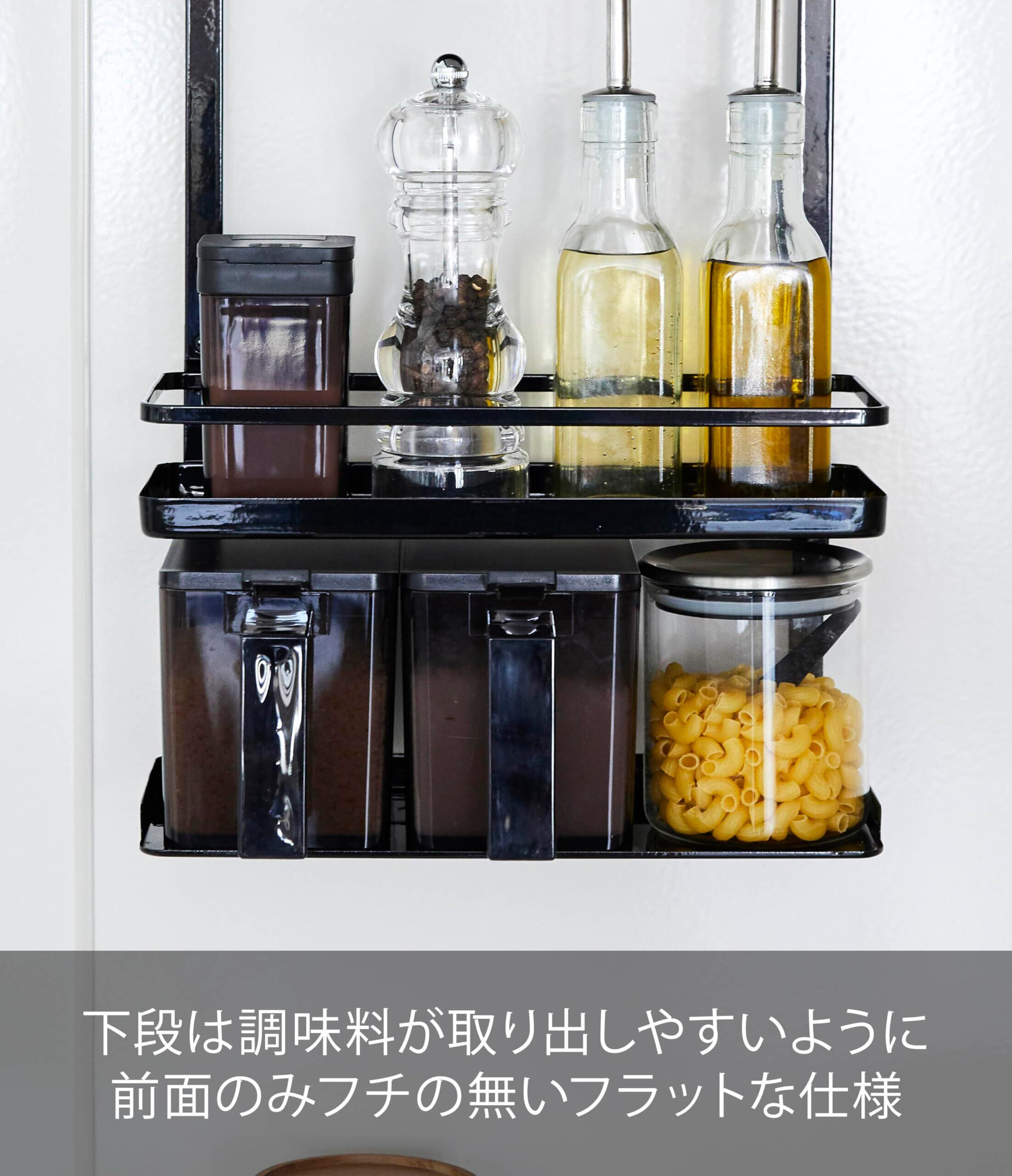 スパイスや調味料の収納スペースに!使いたいときにサッと使える便利な大容量3段ラック!塩・コショウ・オイルなど、よく使う調味料を手元に収納できるトレー。