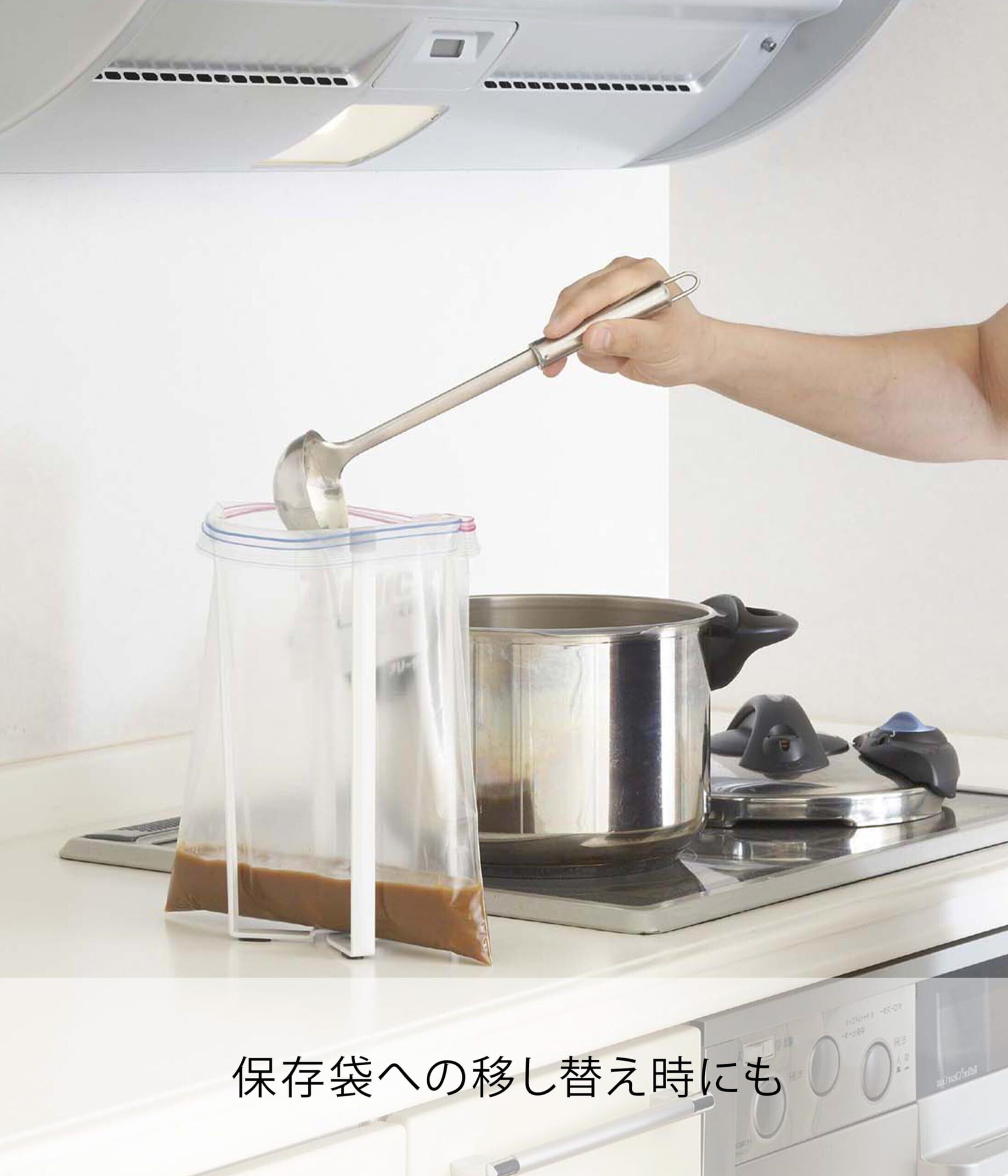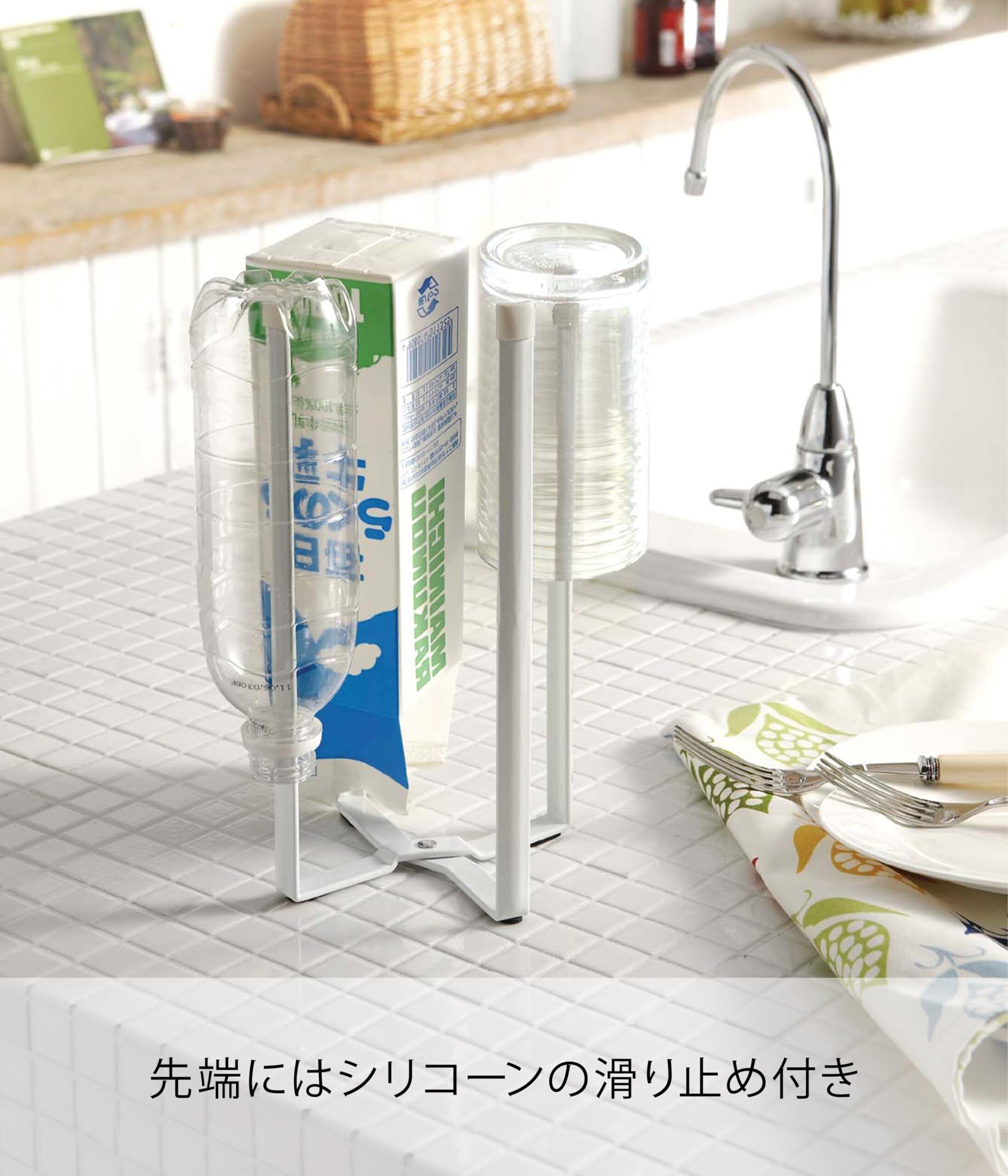 牛乳パックやペットボトルを乾かして何度もリサイクル!使わないときは折り畳んでスリムに収納。チャック付き保存袋、マグボトル、グラスなどを乾かすのに。ポリ袋を掛けて調理中にでるゴミ入れに。