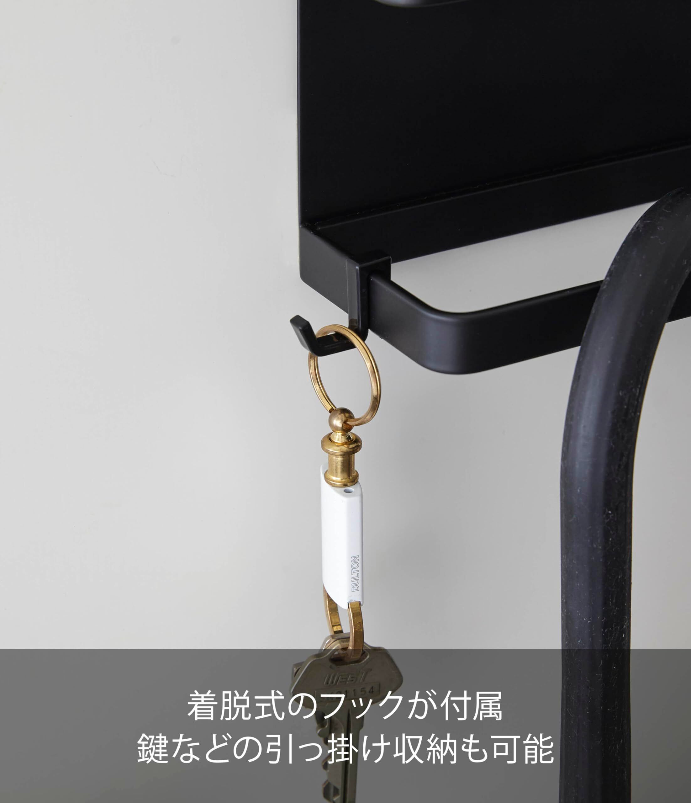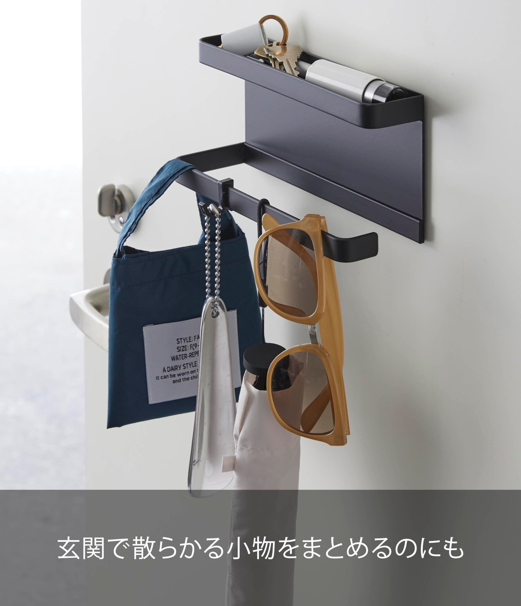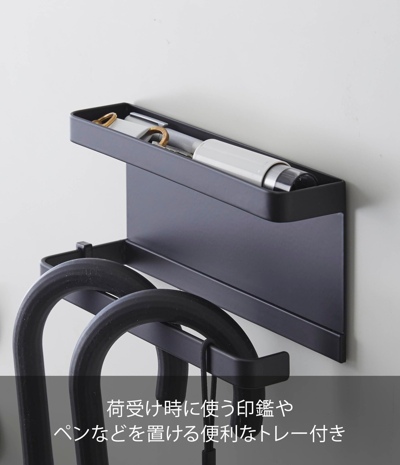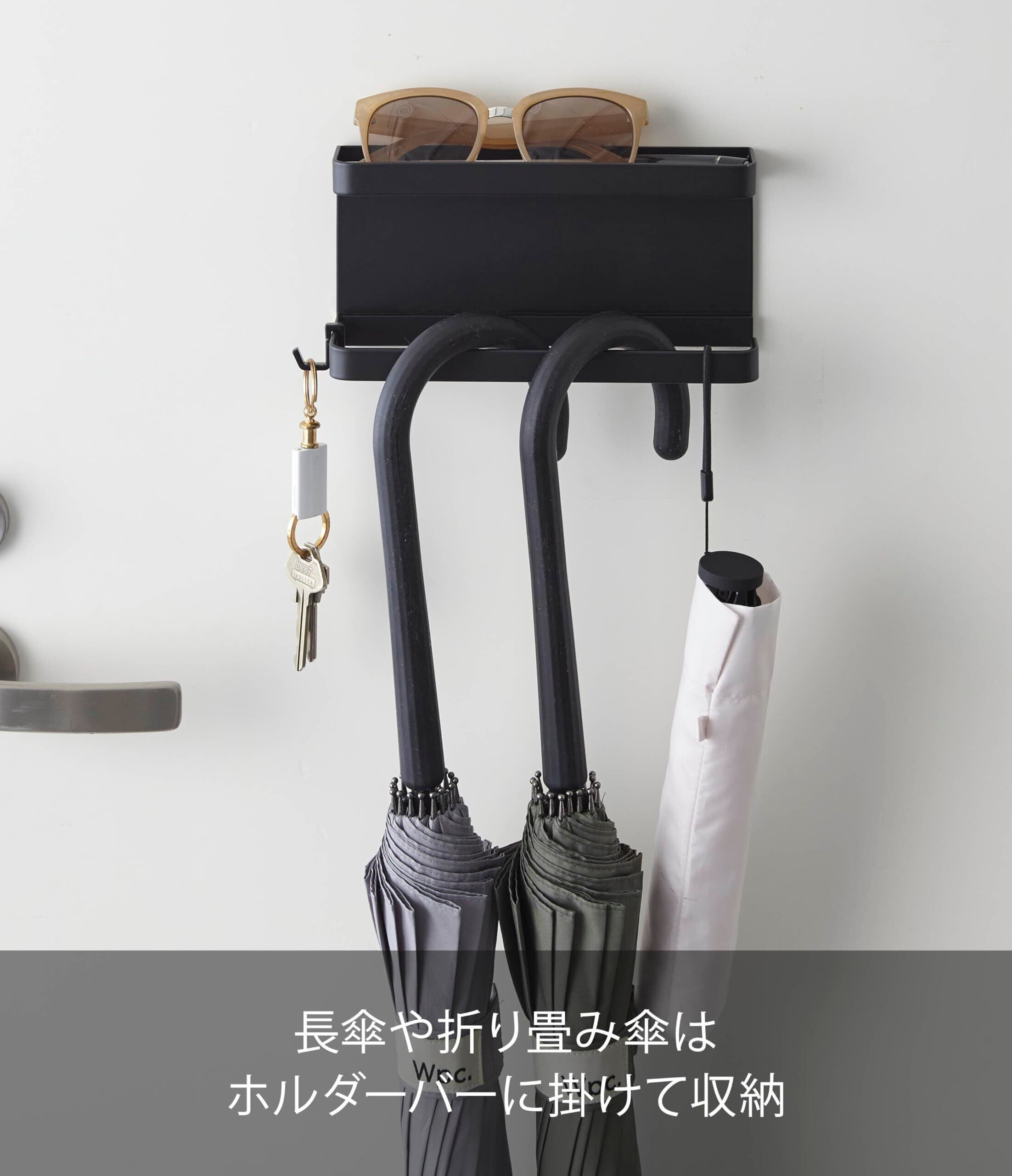 山崎実業(Yamazaki) トレー付きマグネット アンブレラホルダー ブラック 約W20XD7XH9.5cm スマート 傘立て 玄関扉収納 フック付き 5042