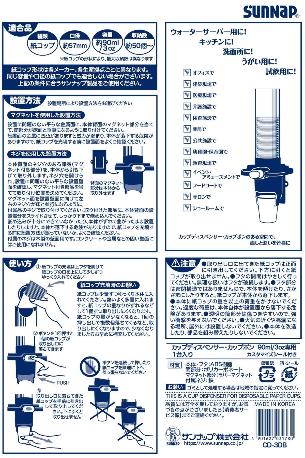サンナップ 衛生保管 紙コップ収納ケース 簡単押しボタン式 マグネットorネジ取付け カップポン CD-3DB
