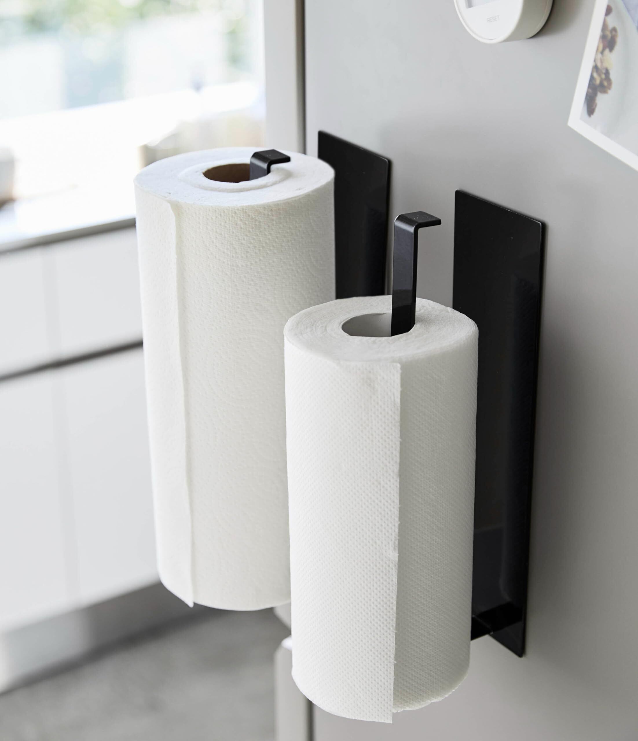 マグネットが付くスチール壁面に簡単取り付けのキッチンペーパーホルダー。