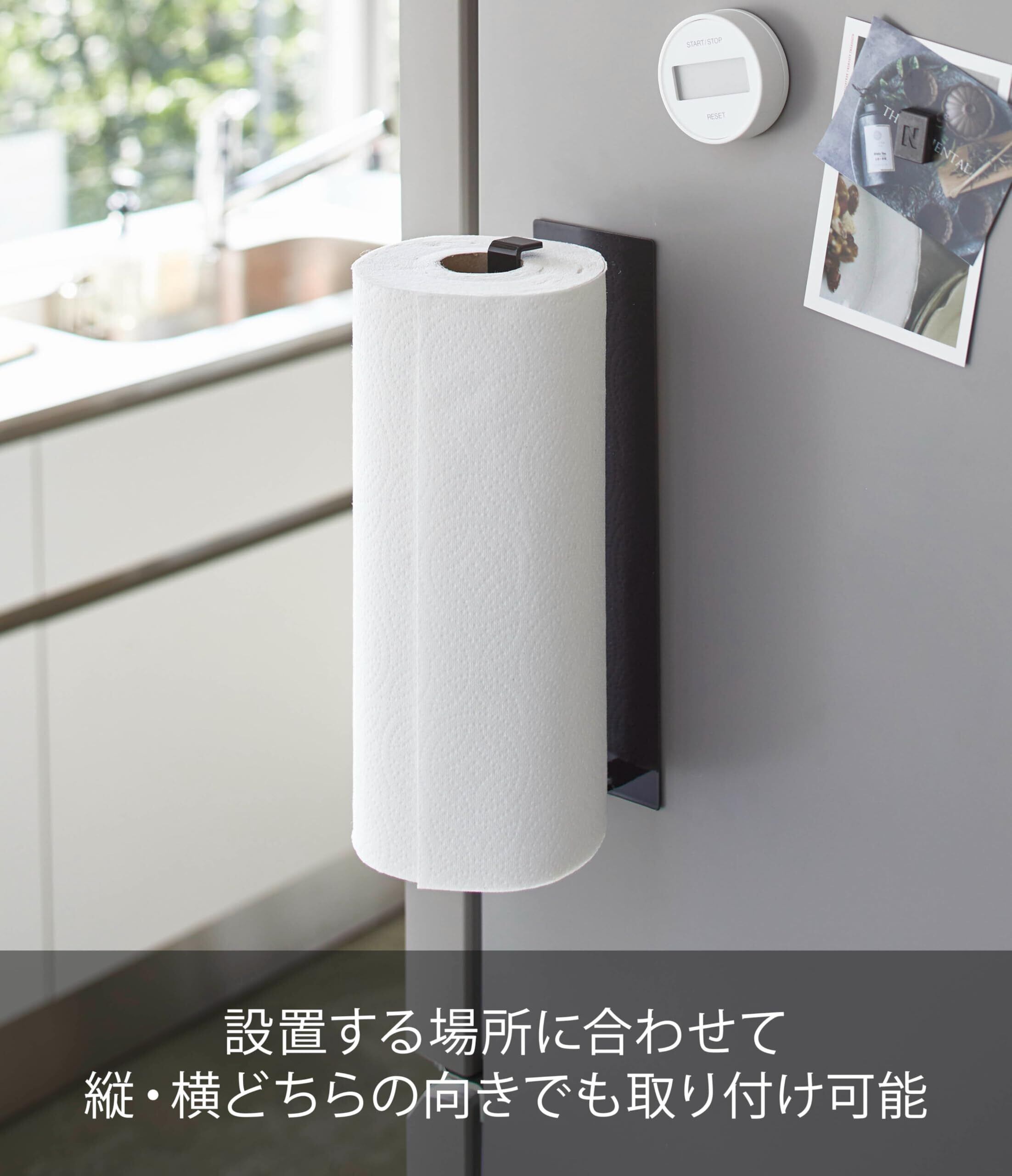 山崎実業(Yamazaki) マグネット キッチンペーパーホルダー ワイド ブラック 約W8XD7.5XH29cm タワー 大判タイプ対応 5217