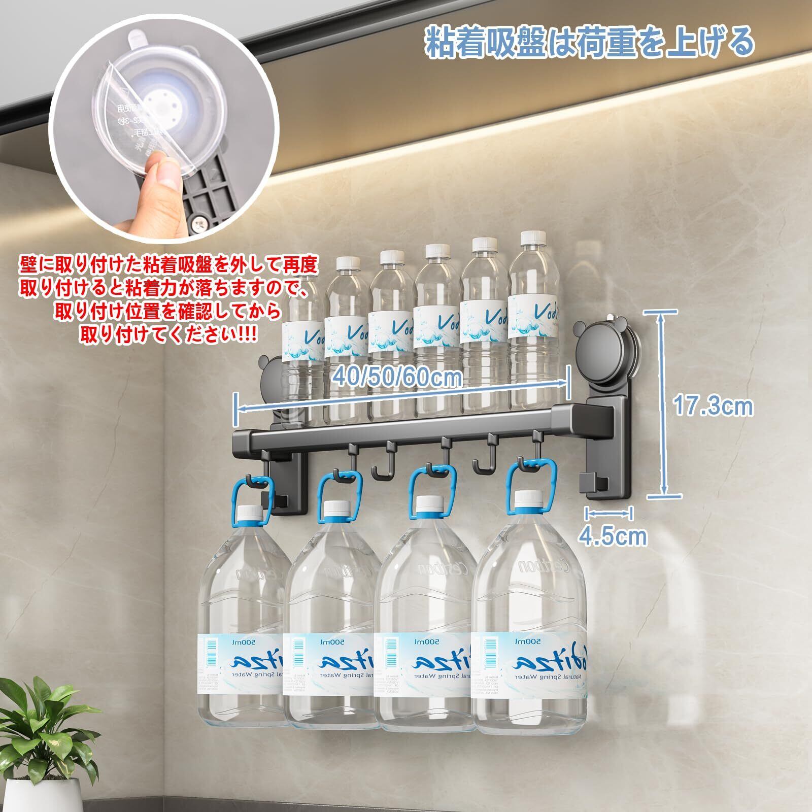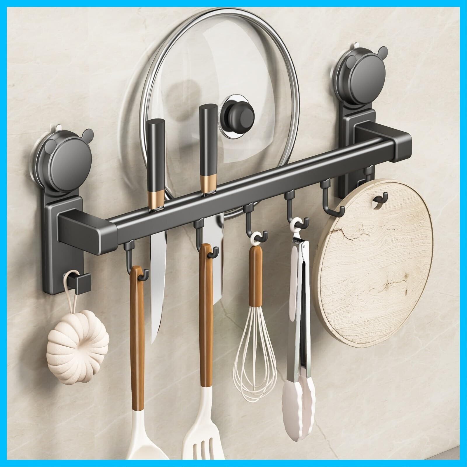 キッチンツールフック 壁掛け 粘着 吸盤 強力 壁美人 台所 収納 調理器具 収納 壁に穴を開けない 金属 アルミニウム 防水防錆 40cm 6個フック CICUFY