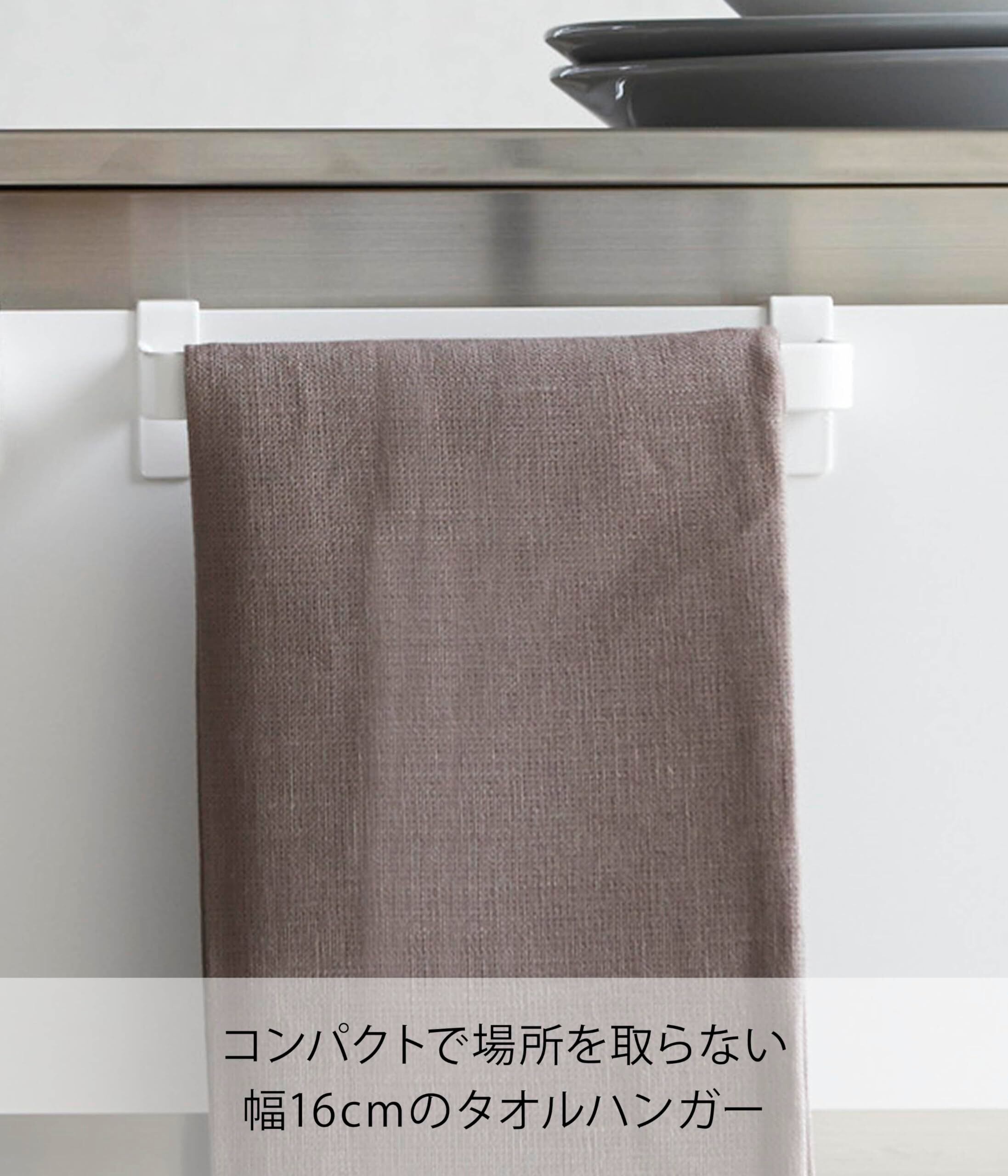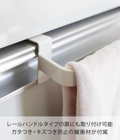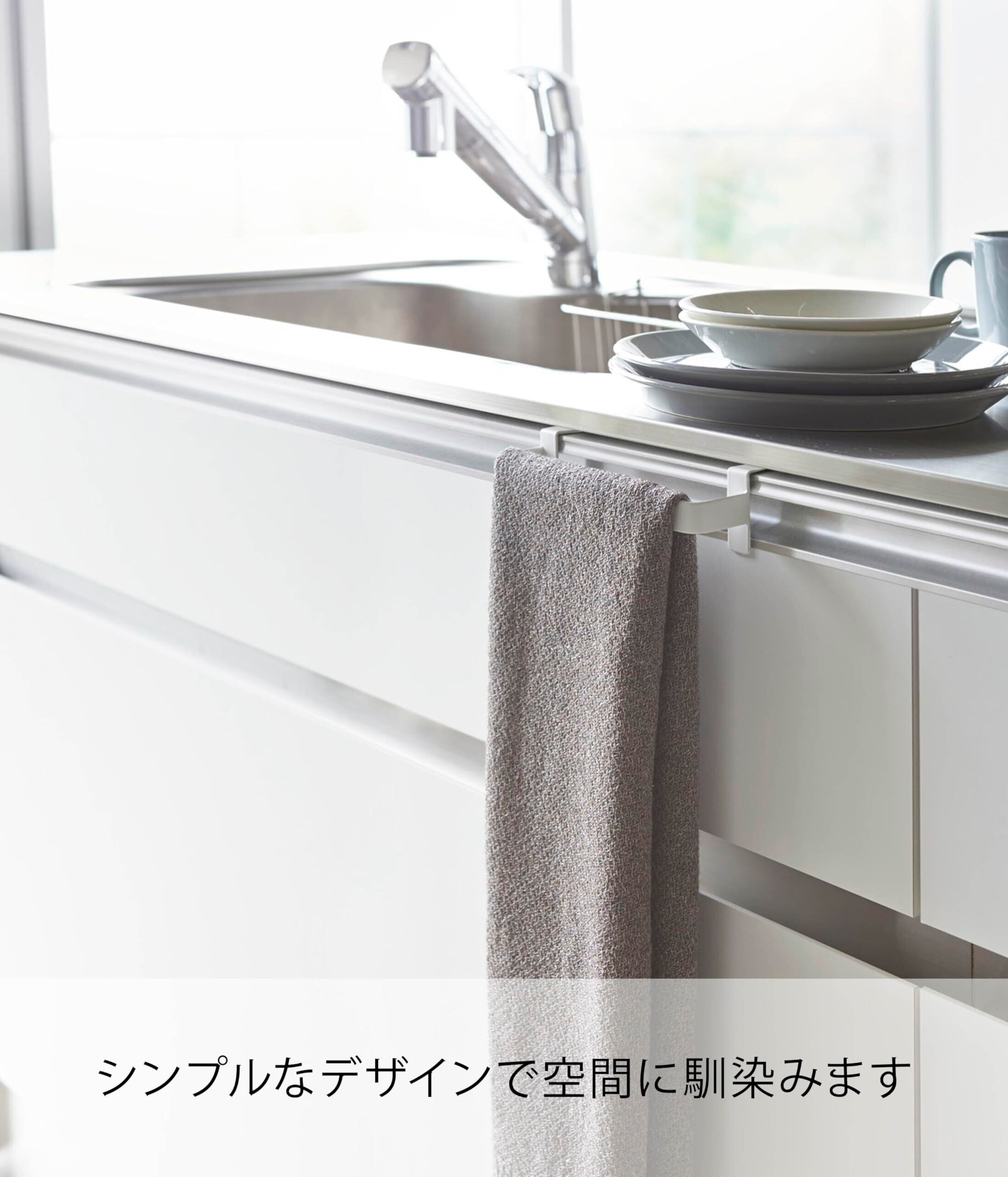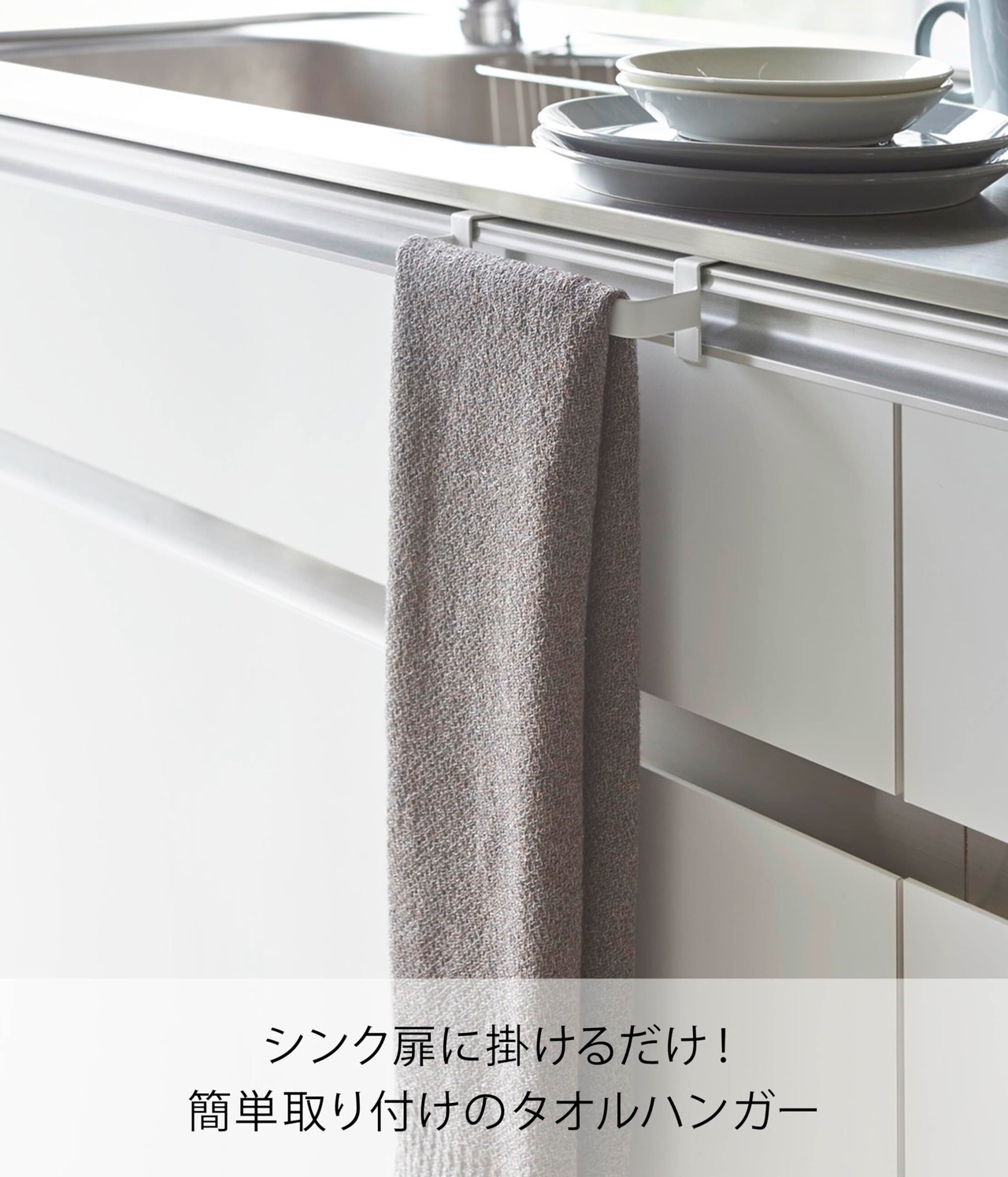 シンク扉に簡単取り付けのタオルハンガー。レールハンドルタイプの扉にも取り付け可能