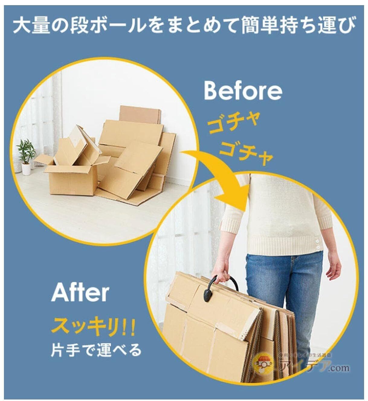 大量の段ボールを片手でカンタンに持ち運ぶ事ができる