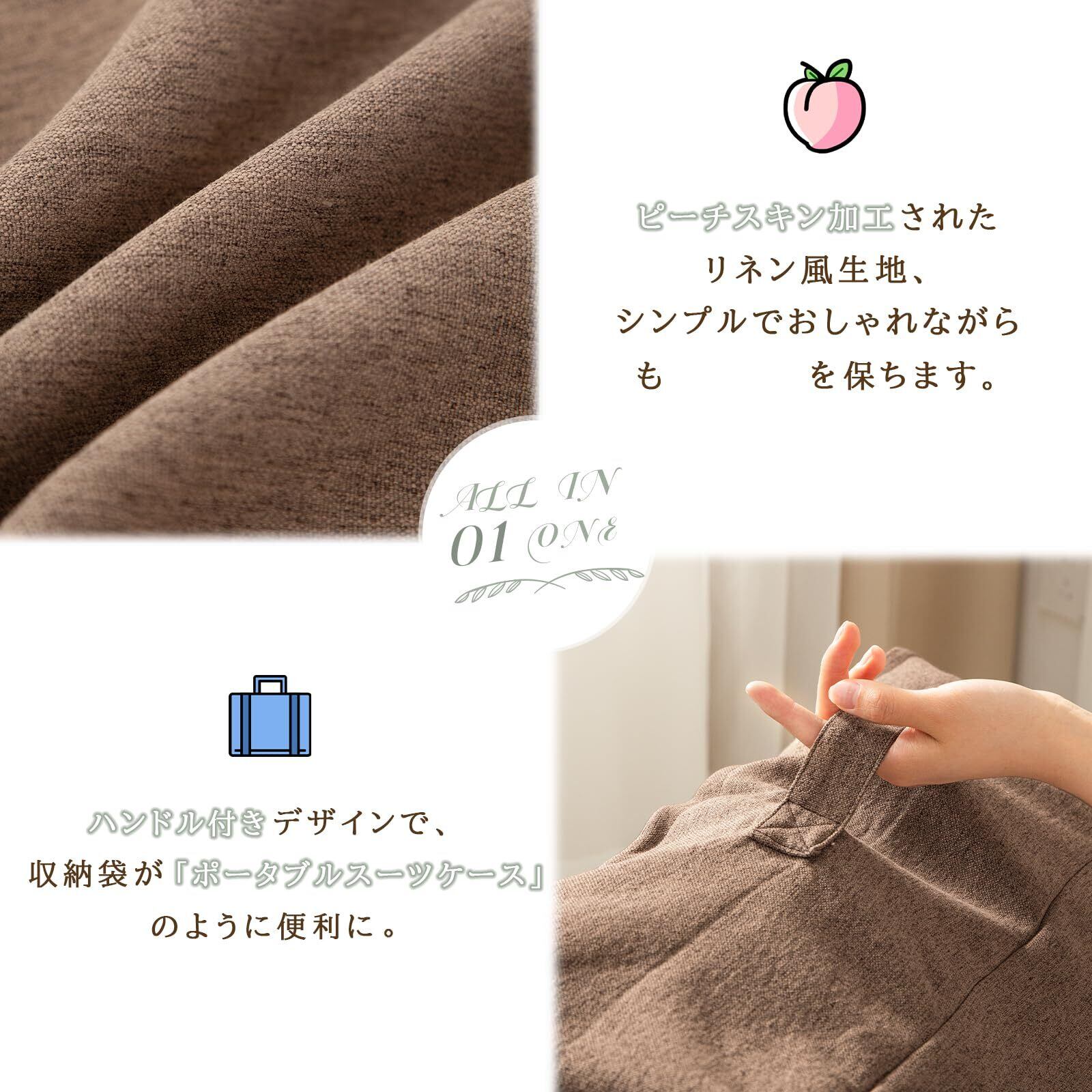 布団収納袋 クッションになる 羽毛布団 毛布 布団 マットレス 敷布団 座布団 衣類 着物 収納袋 収納ケース スクエア 立てられる 背もたれ ハンドル付き キャラメルブラウン