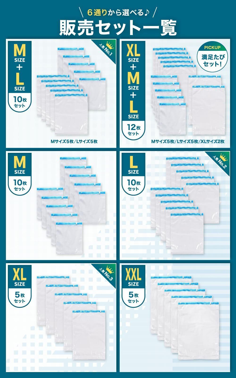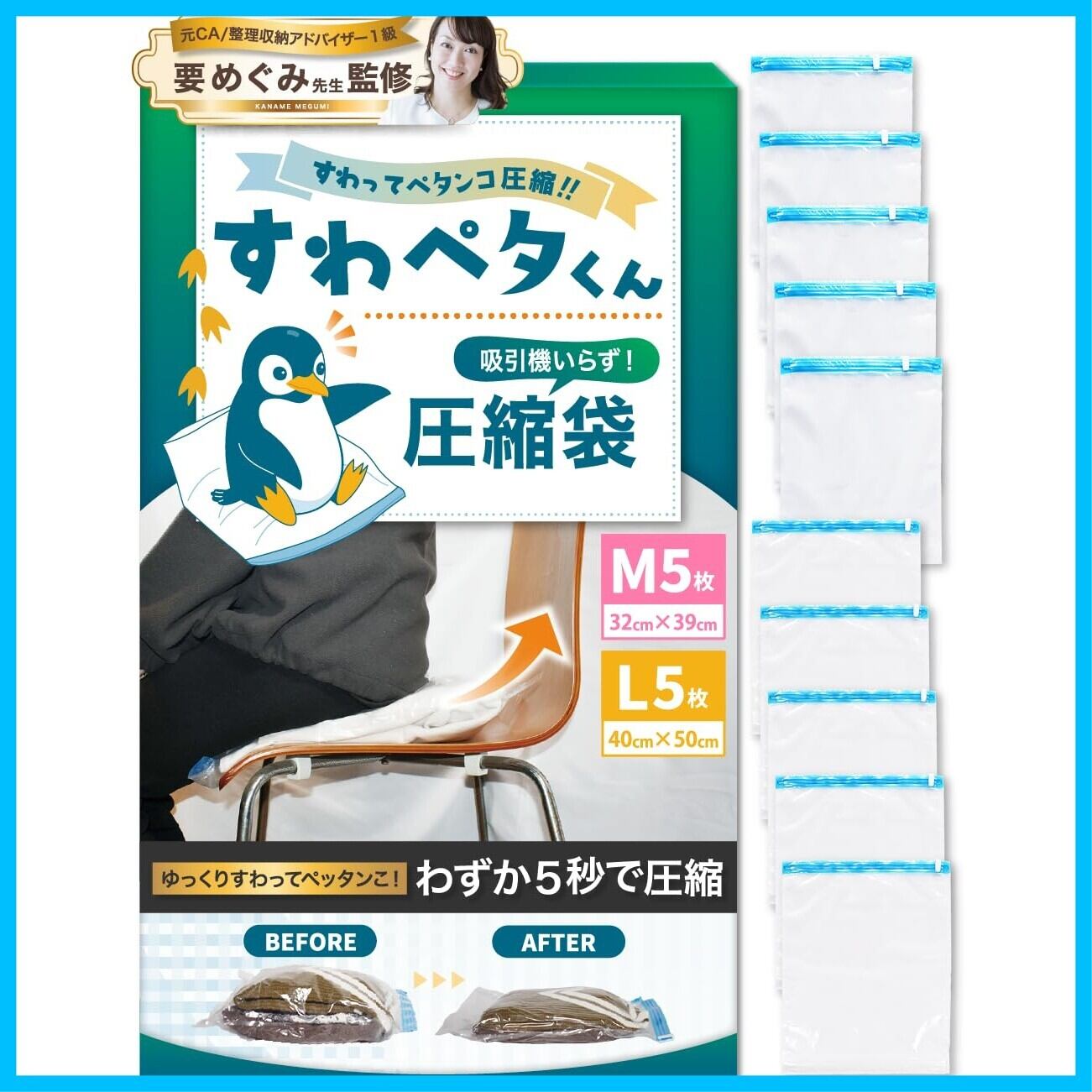 LIXIA 座るだけ5秒圧縮 圧縮袋 旅行 衣類圧縮袋 シワ軽減 圧縮バッグ ラクラク圧縮 力いらず (M 5枚+L 5枚)