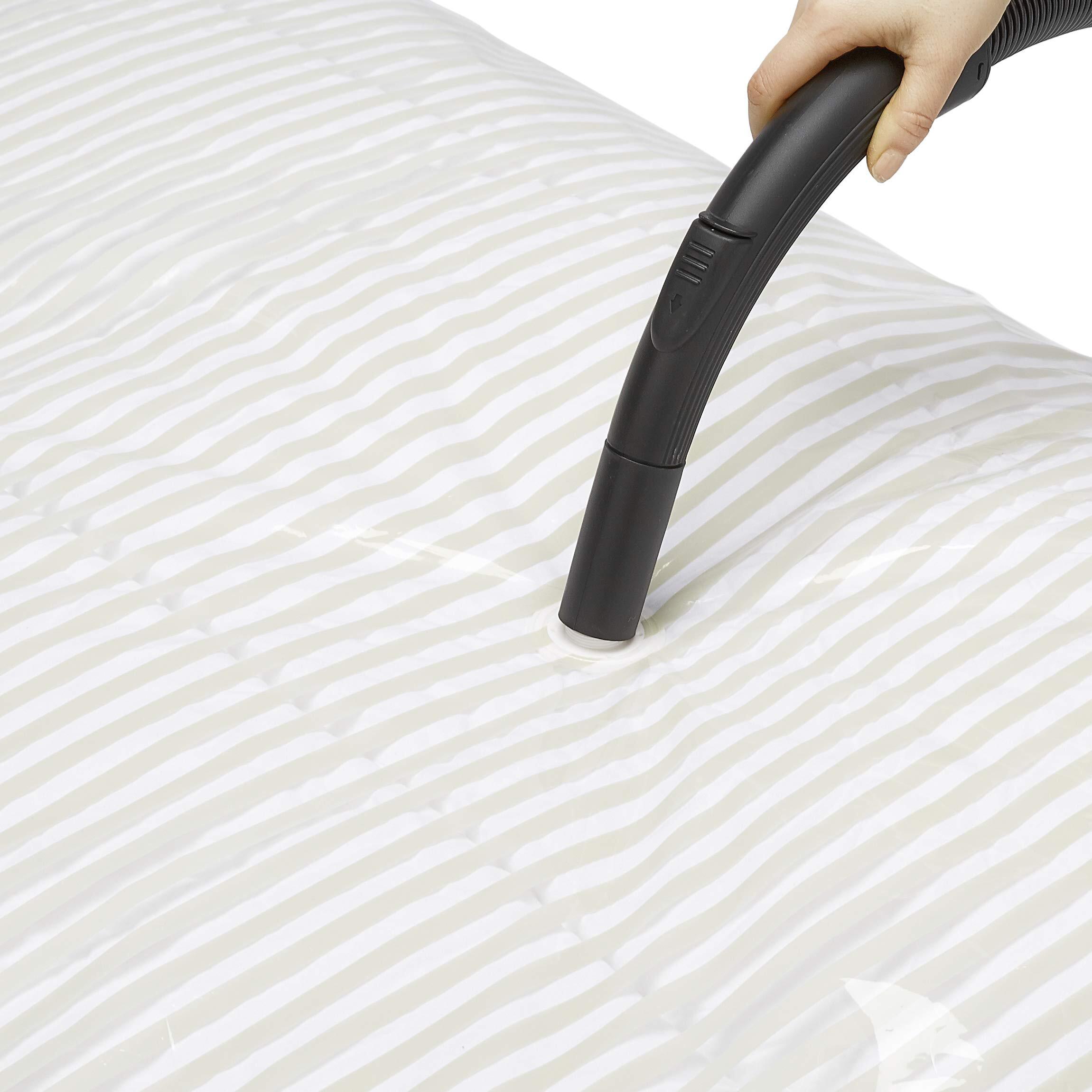 付属のハンドポンプで掃除機なしで使用可能。一般的な掃除機に接続することで高速に圧縮することも可能