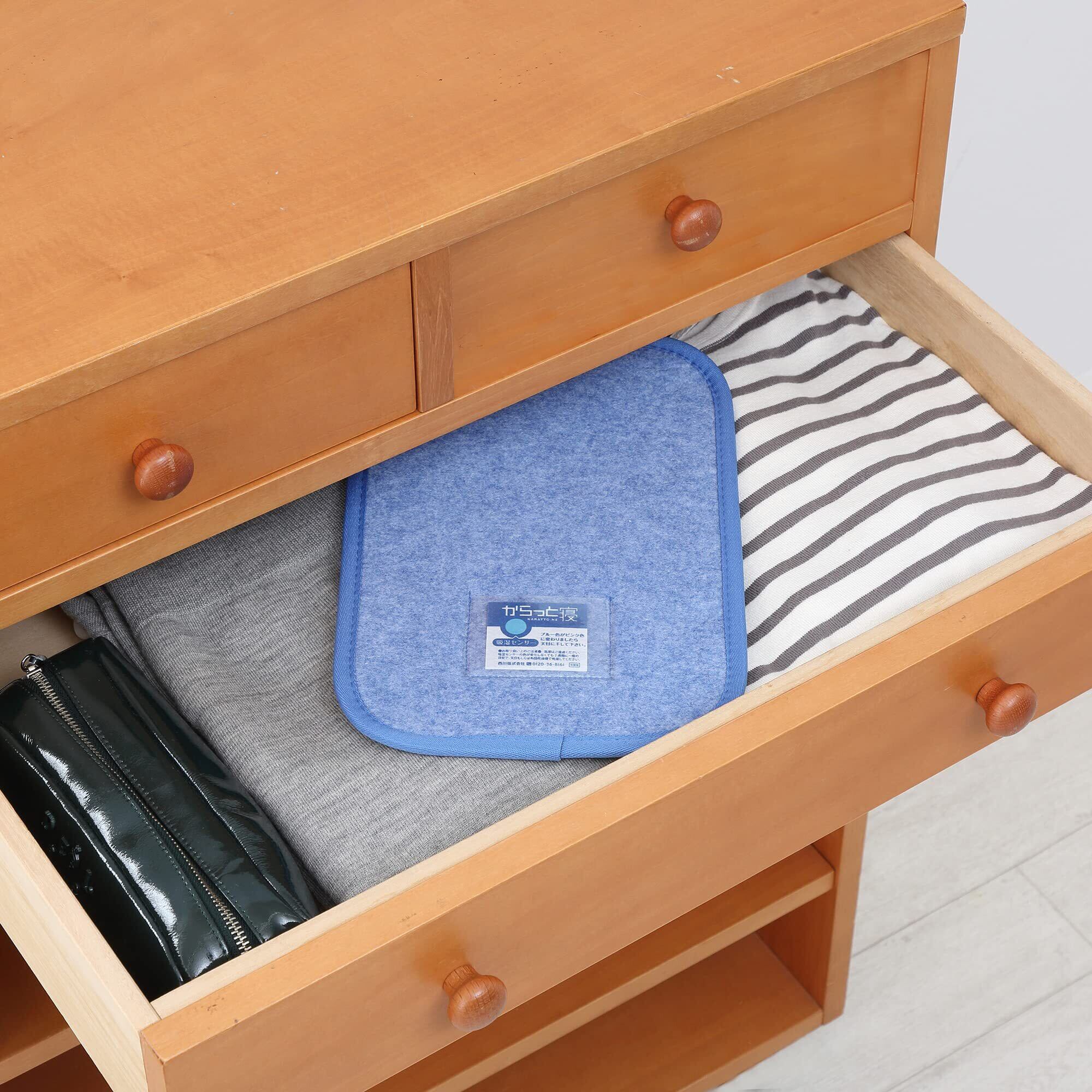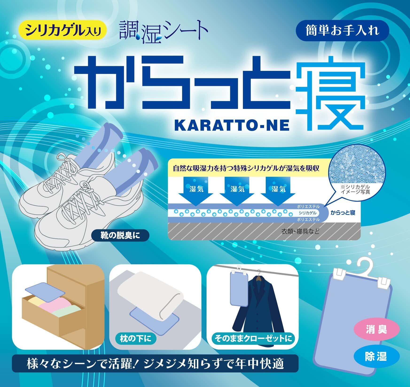 シリカゲル入りでイヤな湿気をグングン吸収。クローゼットやタンスにいれて使ったり、まくらの下に置いたり、様々な場面で使いやすい除湿シート「からっと寝」。