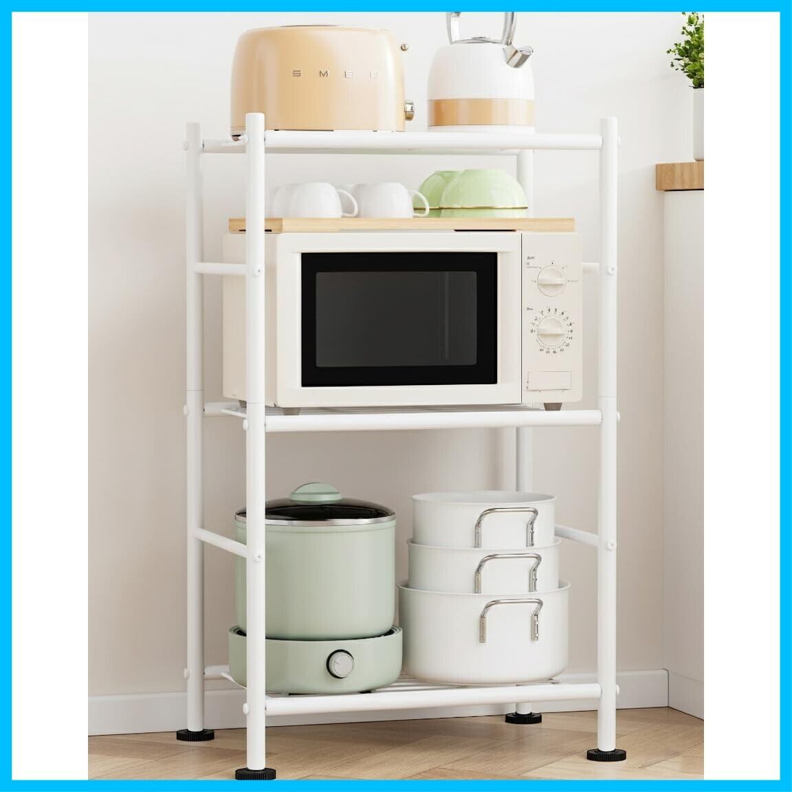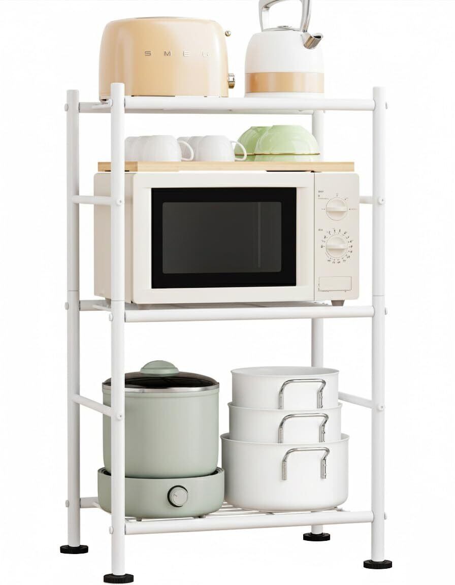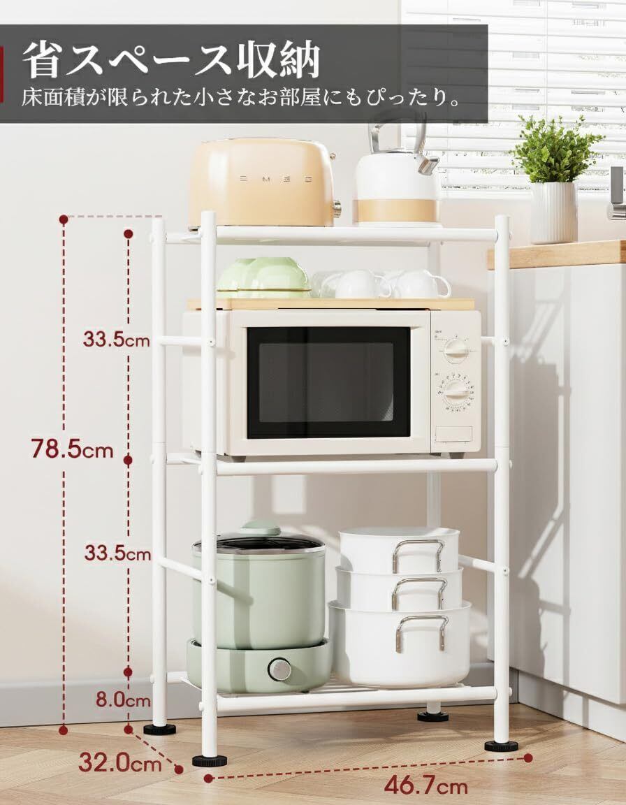 ラック 3層 棚 防錆 スチールラック 調整可能なアジャスター付き 省スペース設計 リビング 洗濯室 キッチン対応 (長さ46.5cm × 幅32cm × 高さ78.5cm、ホワイト)
