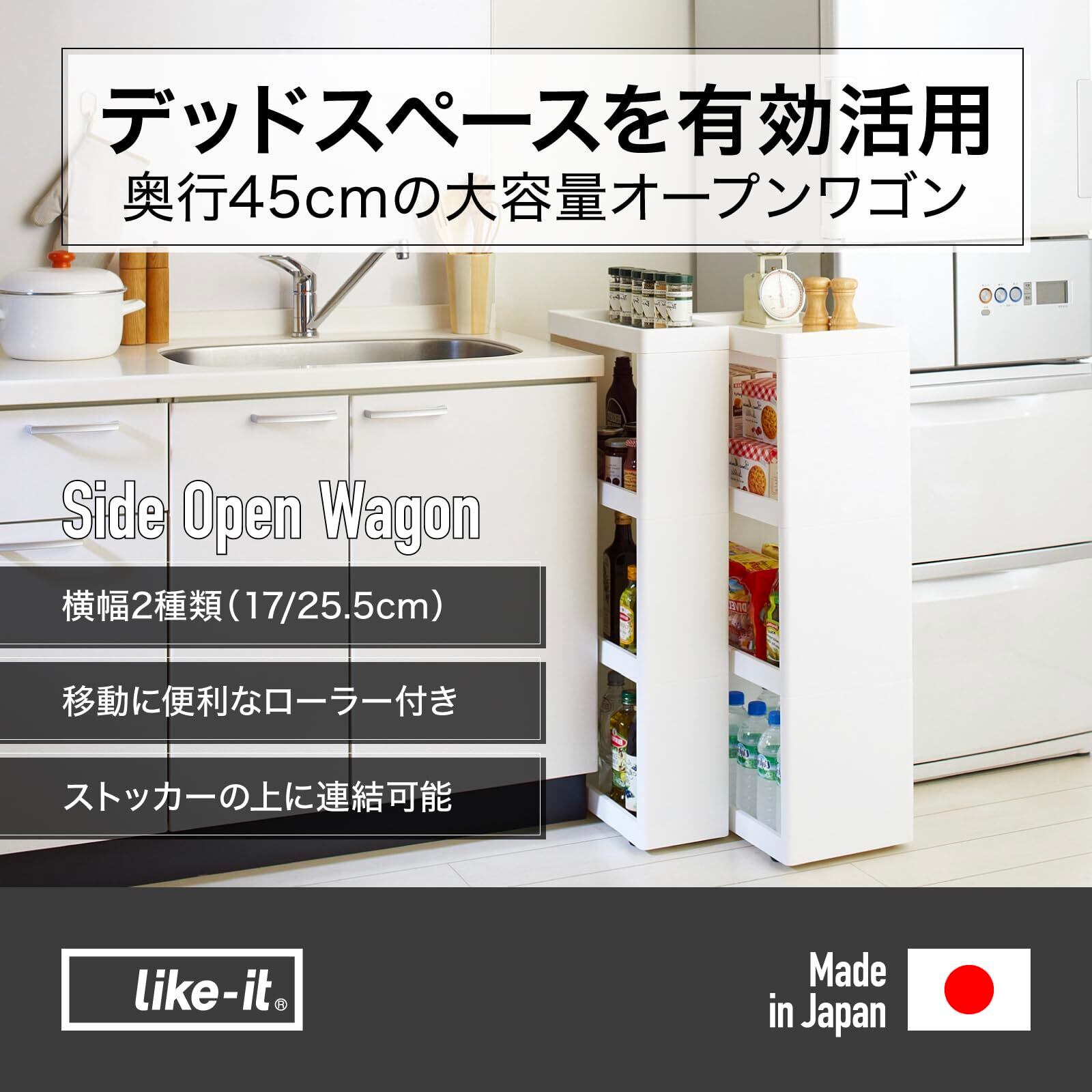 ライクイット (like-it) ワゴン サイドオープンワゴン 4段 スリム ホワイト 約幅17x奥45x高90.5cm SW-4