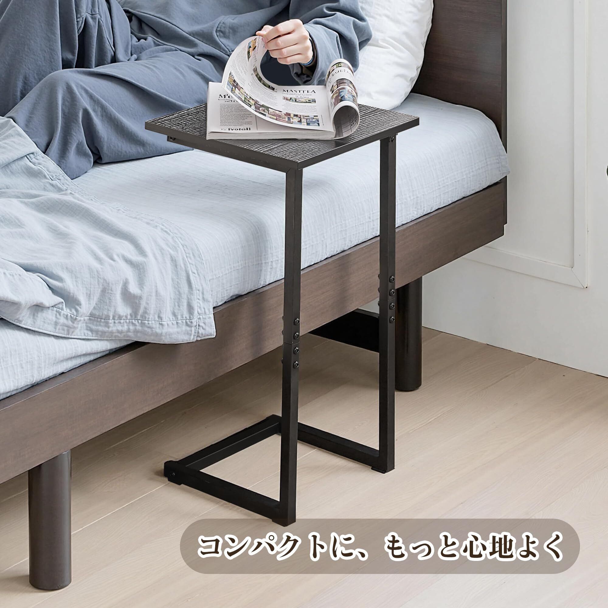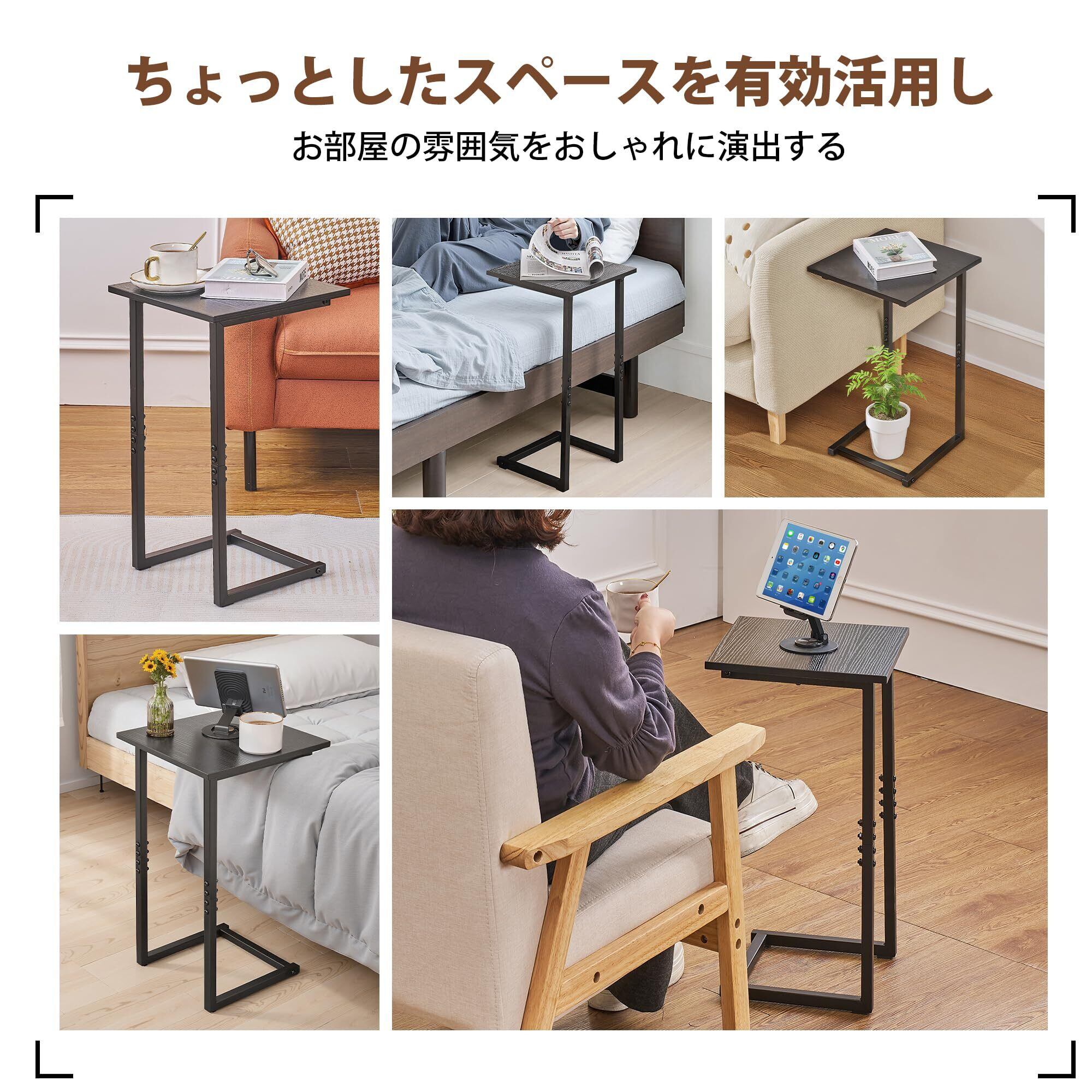 【コの字型テーブル】コの字型のサイドテーブルは、独特な形状によって省スペースで利便性が高く、狭いスペースでも無駄なく使用できます。ソファやベッドの下のスペースに入れ、隙間に差し込んでも使えます。また、コの字型のデザインは作業や食事の際にテーブルを引き寄せやすく、快適な使い心地を提供します。