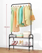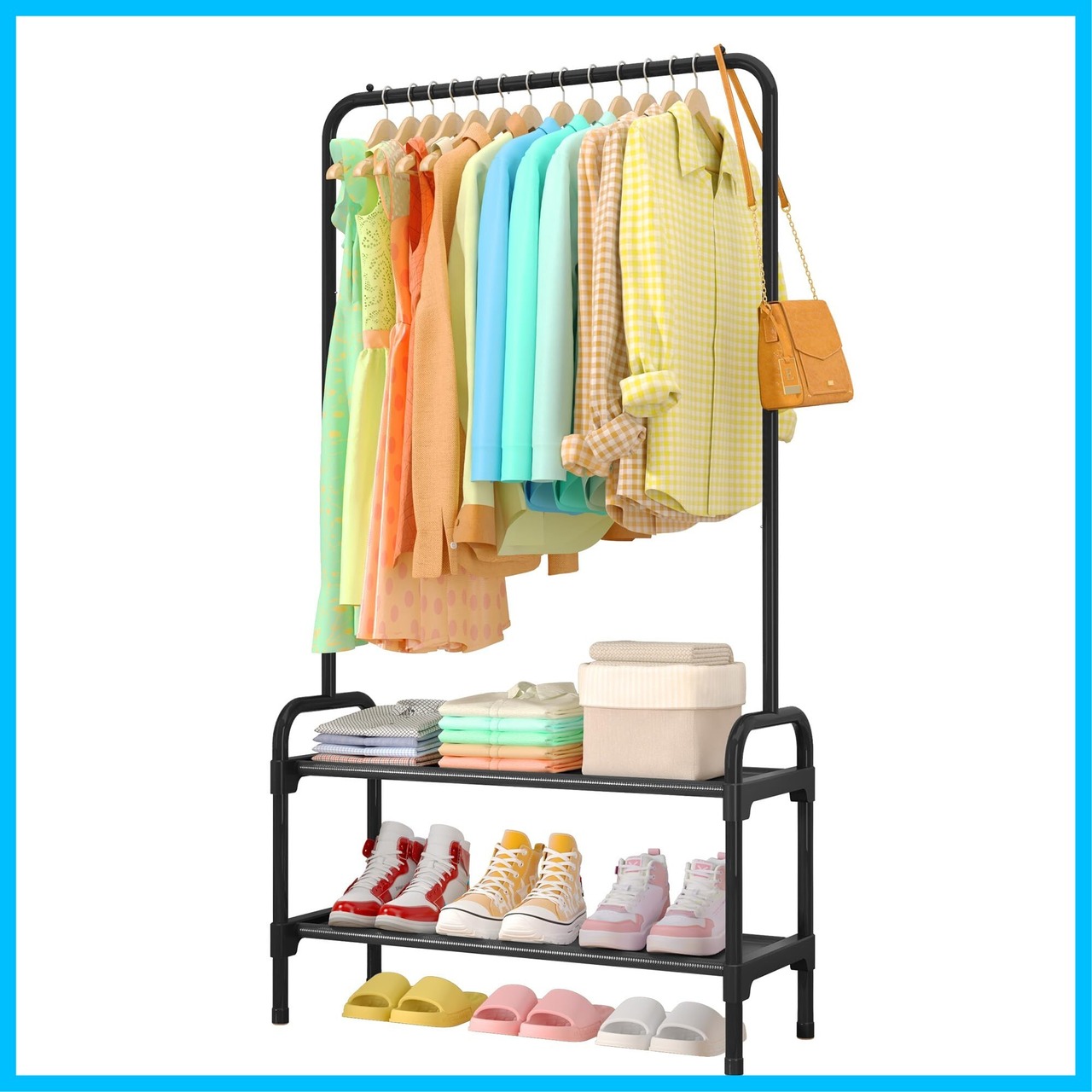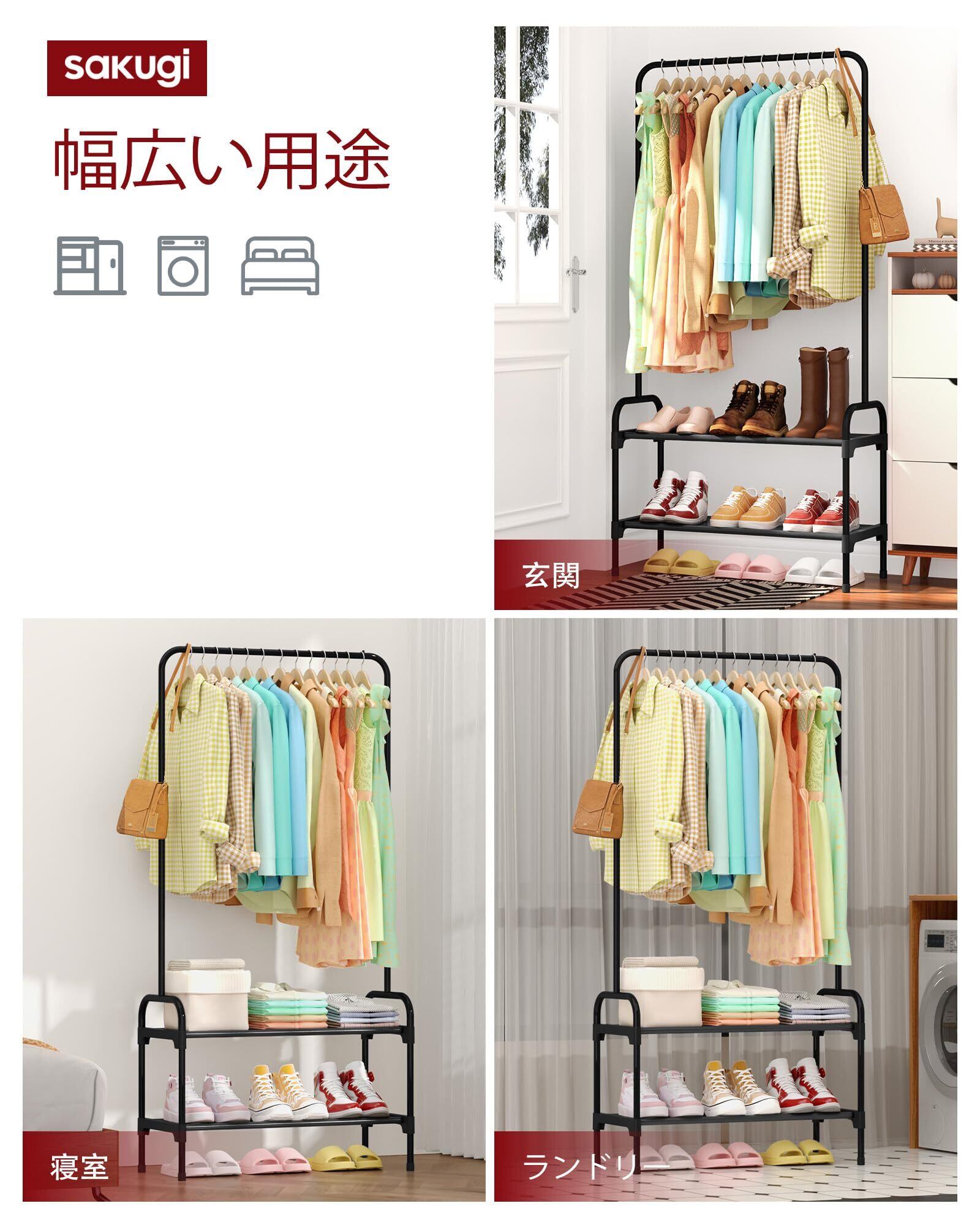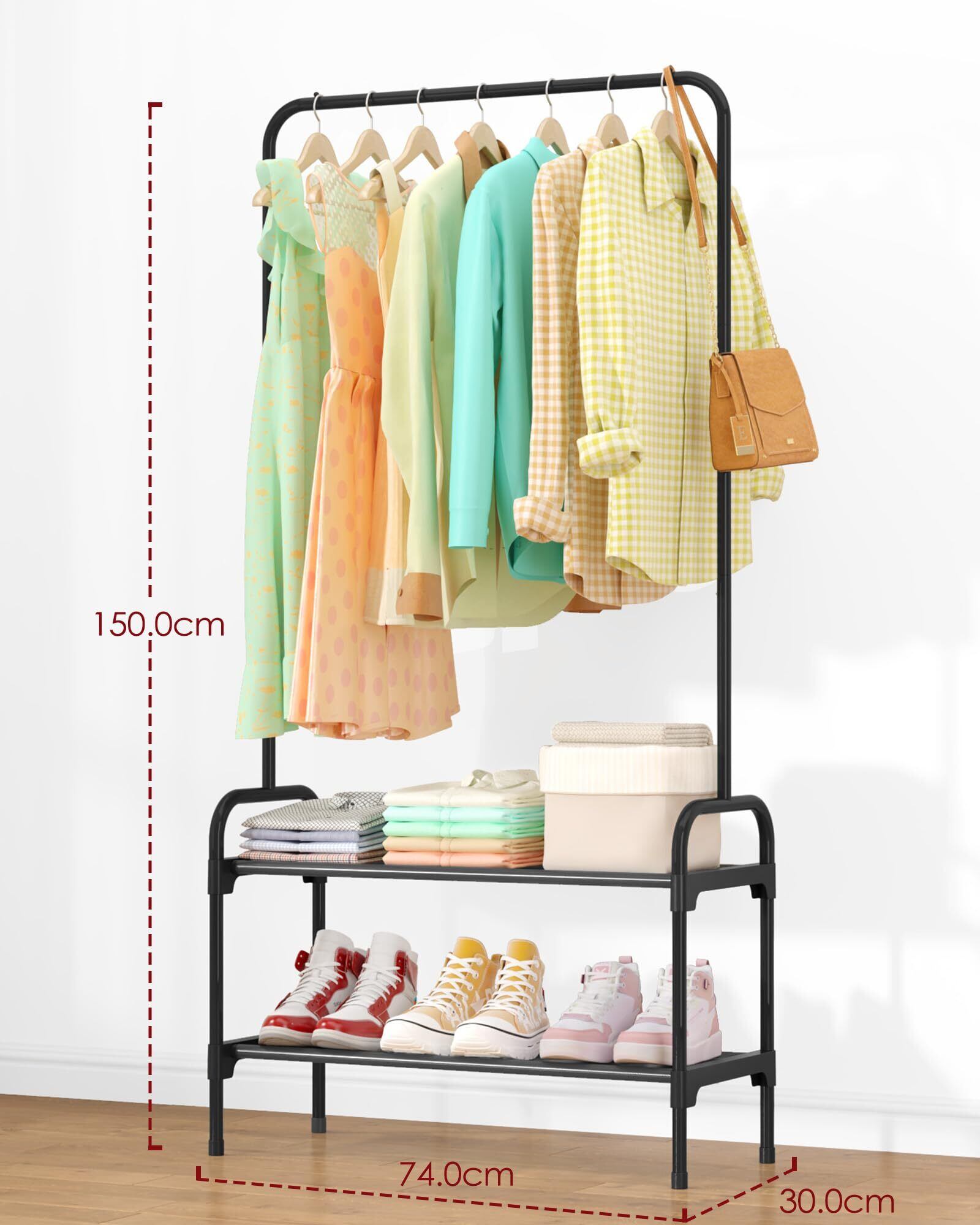 ハンガーラック スリム 衣類収納&シューズラック、大容量 おしゃれ クローゼット 寝室・玄関・ランドリー用 ブラック、幅約74cm×奥行約30cm×高さ約150cm