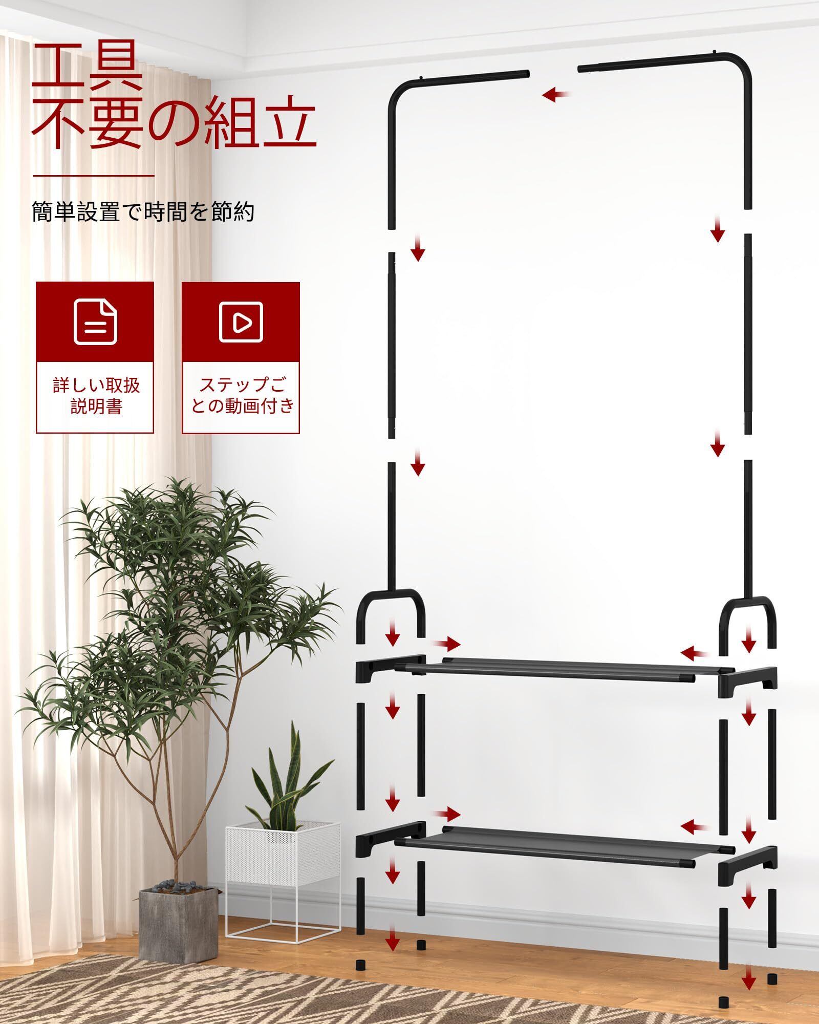 簡単組立: シンプルな構造で、工具不要で組み立て可能なパイプハンガーです。分かりやすいマニュアルと動画ガイドが付属しており、一人でもスムーズに設置できます。面倒のない準備で、すぐにご利用いただけます。
