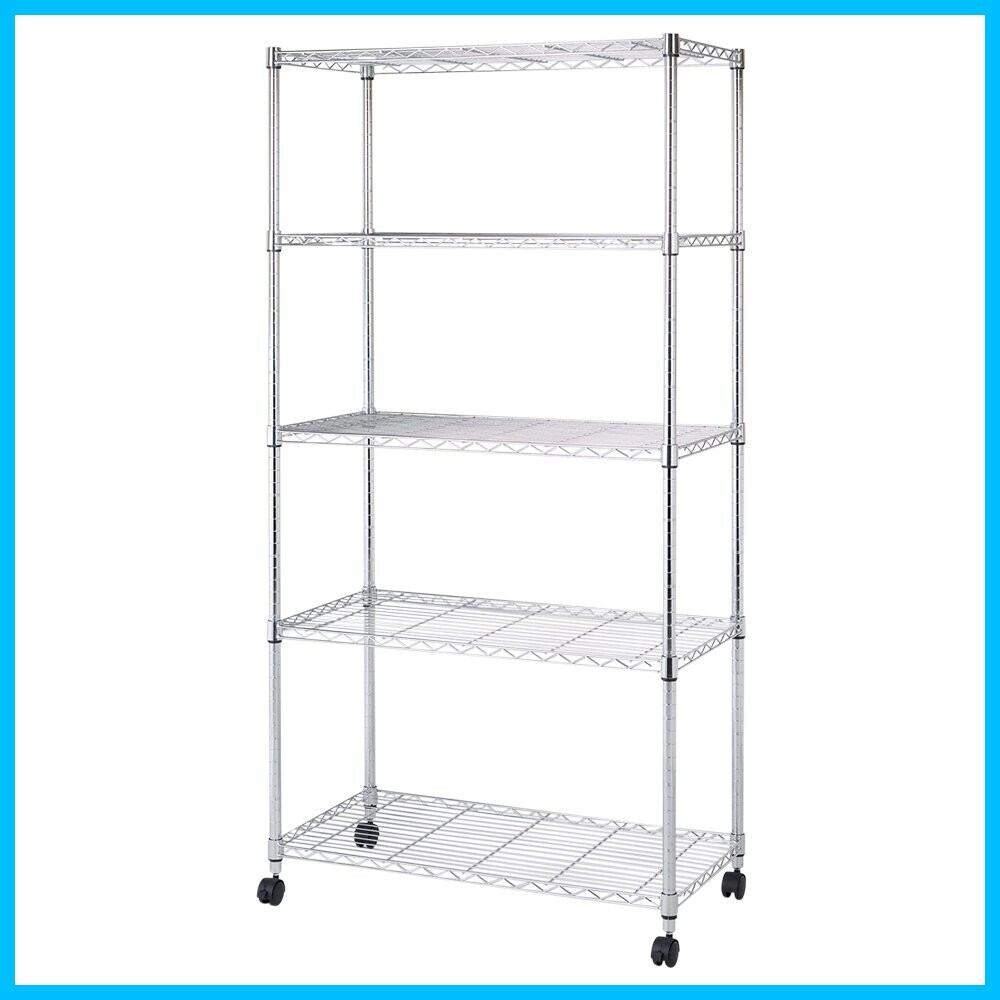 ドウシシャ 棚 ルミナス互換 メタルルミナスラック 幅90 5段 スチールラック 収納棚 幅90×奥行46×高さ180cm 全体耐荷重400kg 頑丈 キャスター付き 防錆加工 ポール径25mmパーツ対応 業務用 シェルフ キッチン収納 EL25-90185
