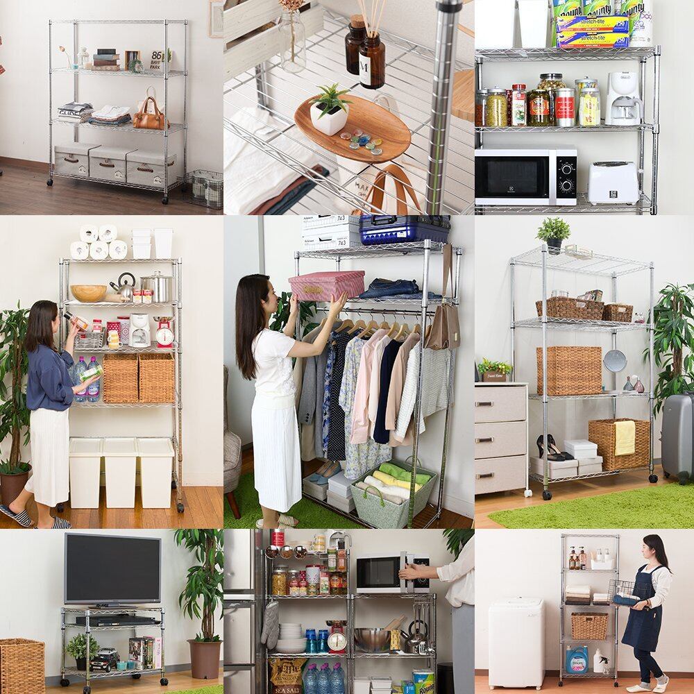 素材:シェルフ(棚)・ポール:スチール(クロームメッキ)、スリーブ:ABS樹脂