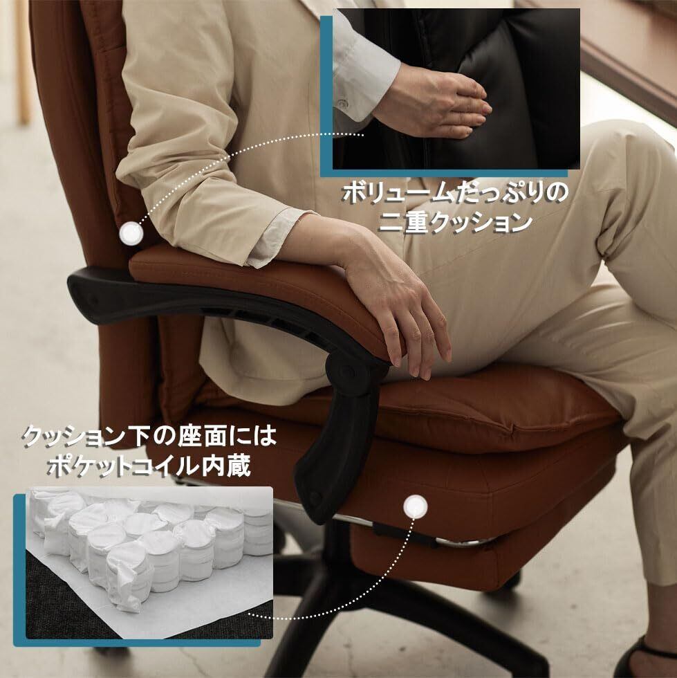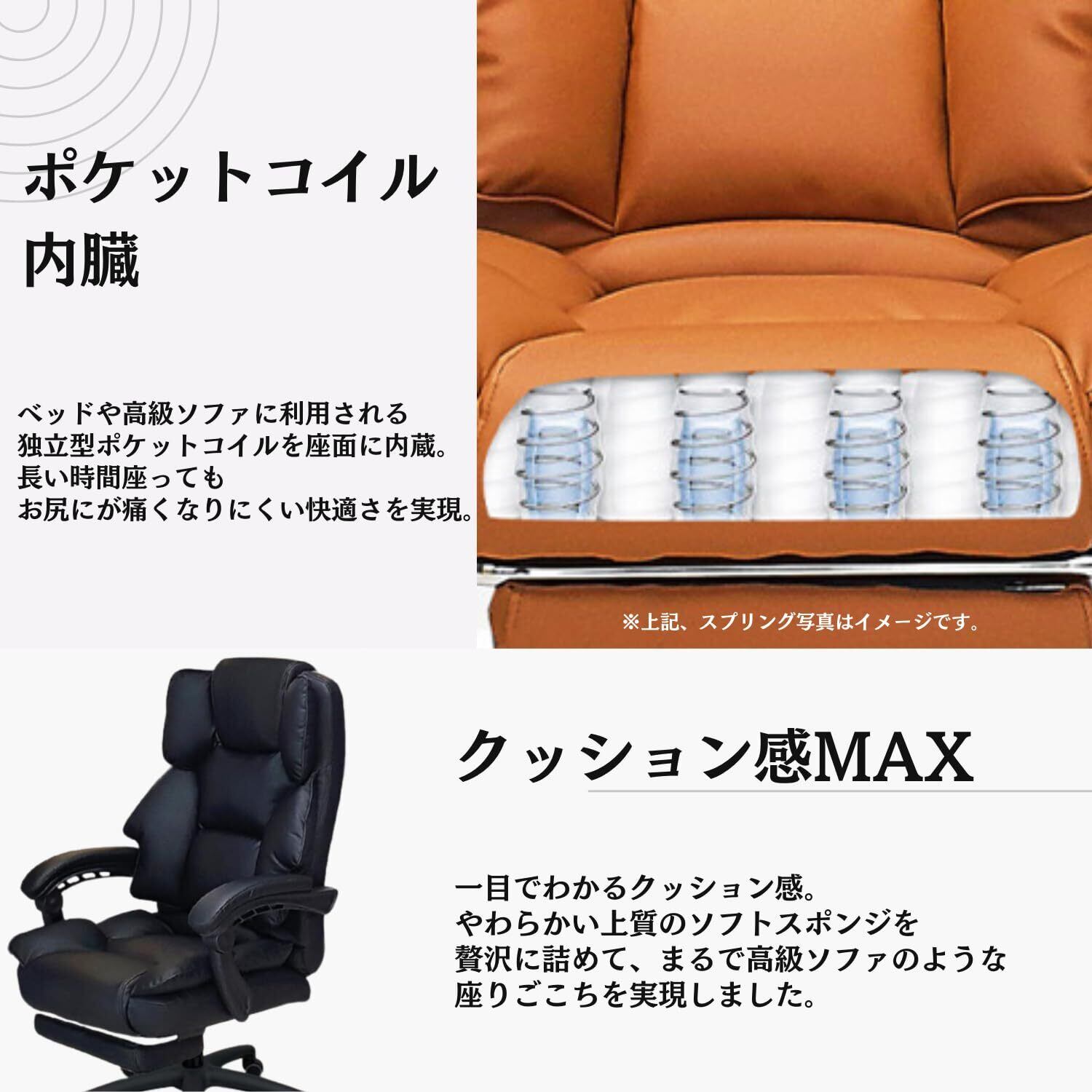 オフィスチェア ゲーミングチェア デスクチェア (ブラック)(ポケットコイル搭載 ゲーミング座椅子 リクライニングチェア 一人掛け 社長椅子 伸縮可能なオットマン