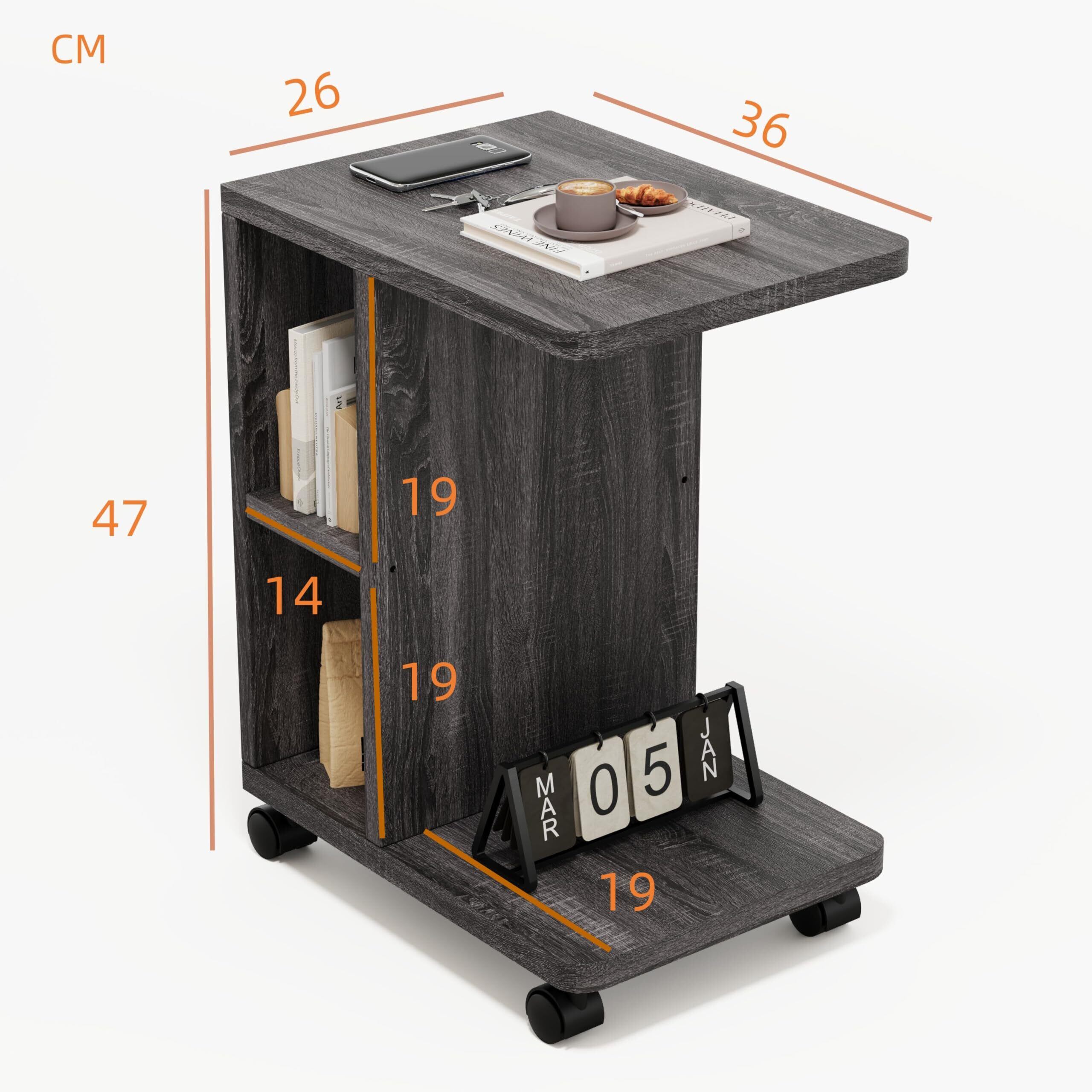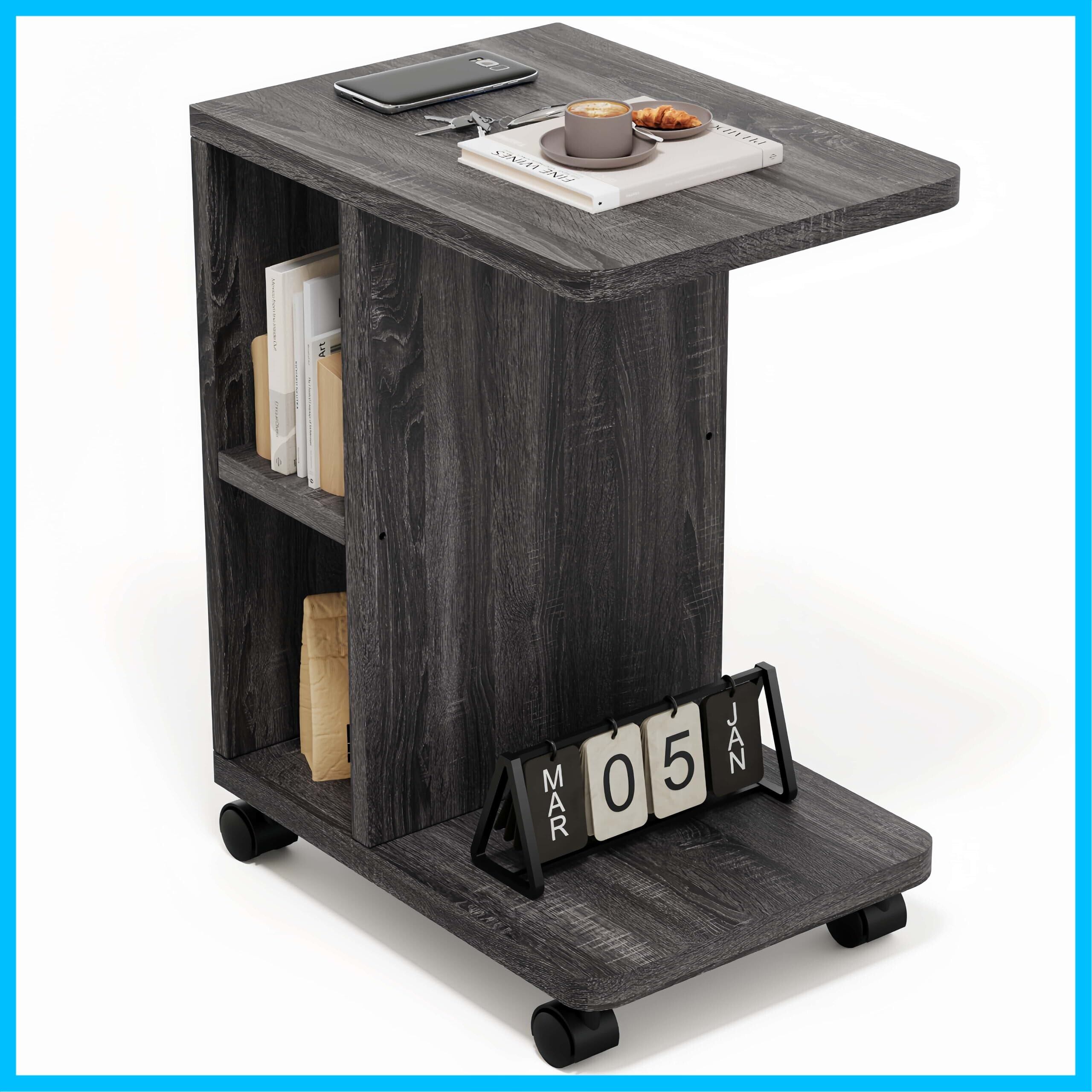 Merytes サ1.応用が広い:車輪付きのサイドテーブルは仕事、食事、おやつ、コーヒー、雑誌を読むのに便利で、リビング、寝室、書斎、小空間、特にソファーとベッドのそばに適しています。 いつでもどこでも本や日用品をストックしておく。イドテーブル サイド テーブル キャスター付き ベッド ソファリビング R角保護 可移動ナイトテーブル