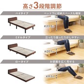 商品サイズ(cm):幅約98.5×奥行約208×高さ約59 、床面高さ(cm):(下位設定)9.5・(中位設定)20・(上位設定)33.5、ベッド下高さ(cm):(下位設定)0・(中位設定)13.4・(上位設定)27