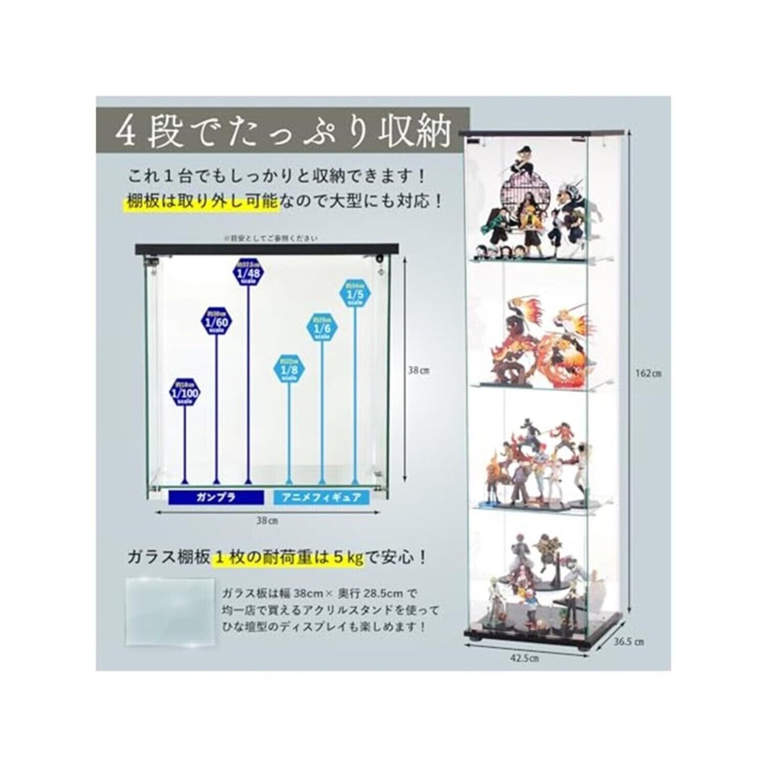 不二貿易 コレクションケース フィギュアケース 4段 幅42.5×奥行36.5×高さ162cm ブラック 強化ガラス 全面ガラス 組立商品 クリア 98880