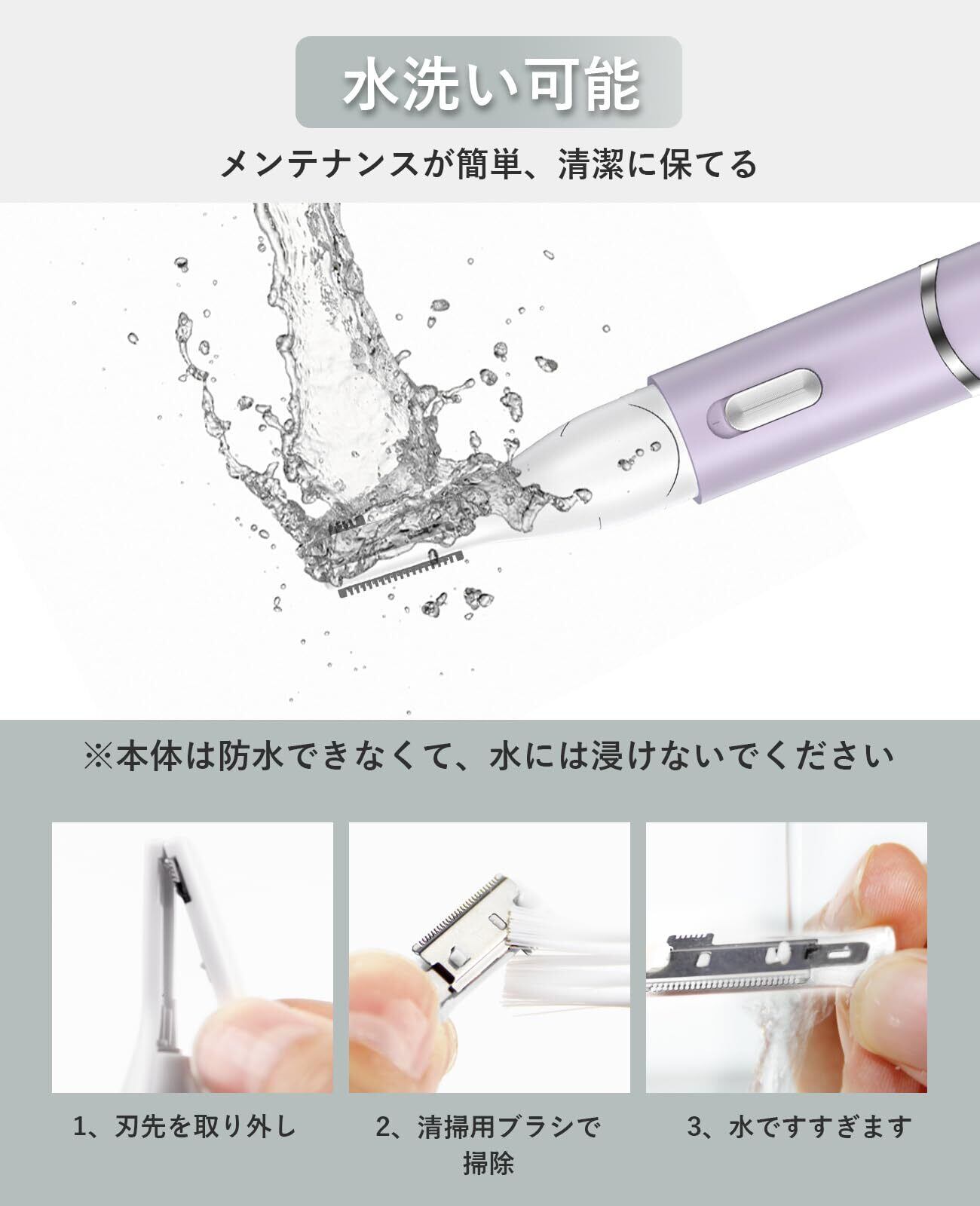 【お手入れ簡単、1年間安心サービス顔そり】眉毛そり メンズ本体は便利な交換式なので、使用後はヘッドを外して直接水洗いでお手入れできます。 眉毛整える長期間の連続使用には、クリーニングブラシで皮脂などの汚れや刃に付着した毛を水で洗い流し、清潔な状態で使い続けることができます。 注意:洗浄後はすぐに水を拭き取り、顔剃り レディース カミソリ本体を水につけないようにしてください。 当社の顔用カミソリに何か疑問や不具合があった場合、24時間体制でアフターサービスを行い、できるだけ早く100%満足のいく解決策を提供します。 当社のまゆけシェーバー メンズ製品は、1年間の製品保証が付いています。 お気軽にお問い合わせください。