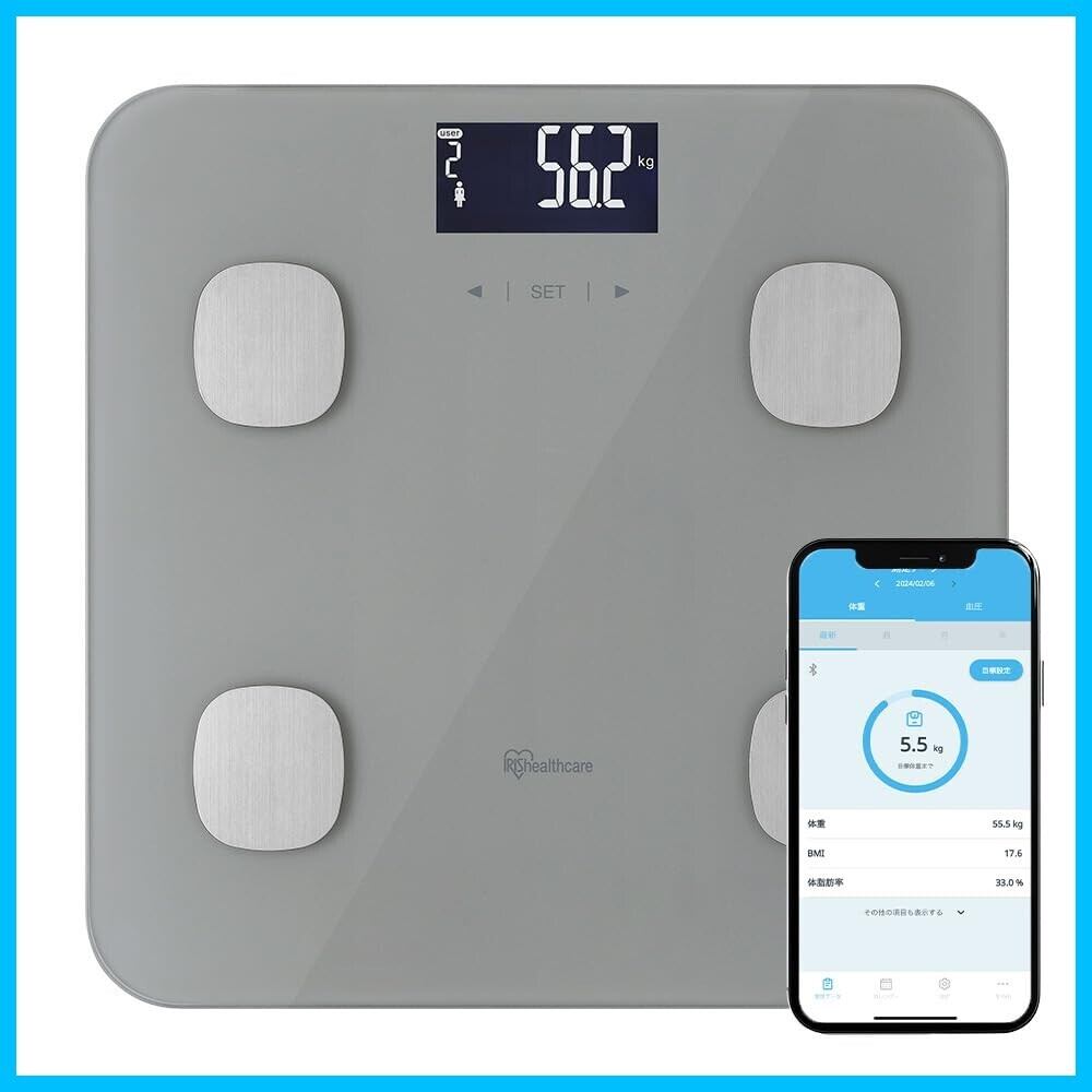 アイリスオーヤマ 体重計 体組成計 健康家電 健康 ヘルスケア 体調管理 スマホ連動 IBCM-B212-H グレー