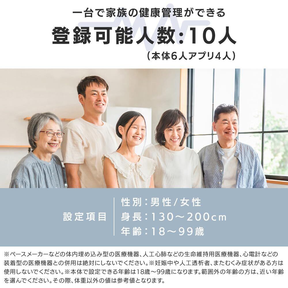 設定項目【登録人数】10名(本体6名、アプリ4名)【性別】男性/女性【身長】130~200cm【年齢】18~99歳
