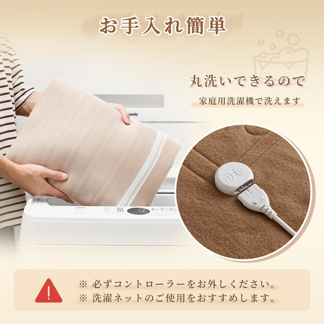 【ダニ退治&抗菌防臭&丸洗い可】ダニ退治機能を搭載。電源を入れて約0.5~1時間置くことで、ダニの活動を抑え、抗菌・防臭効果を発揮します。抗菌防臭加工により、黄色ブドウ球菌などの菌の増殖を抑制し、菌が発生させる「嫌な臭い」を防ぎます。また、コントローラーを取り外せば、洗濯ネットに入れて洗濯機で丸洗いできます。※ ドラム式洗濯機、乾燥機のご利用はお控えください。