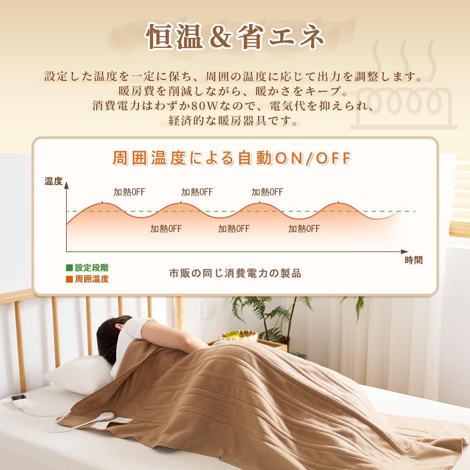 【3分で温まる&掛け敷き兼用】電源を入れてから約30秒で暖かさを感じ始め、約3分で全身がじんわり温まります。温かさと安全性を兼ね備えた理想的な設計です。膝に掛けても肩にかけてもゆったりと使える電気ひざ掛けです。掛けても敷いても使えるので、場所を選びません。プレゼントにもおすすめです。