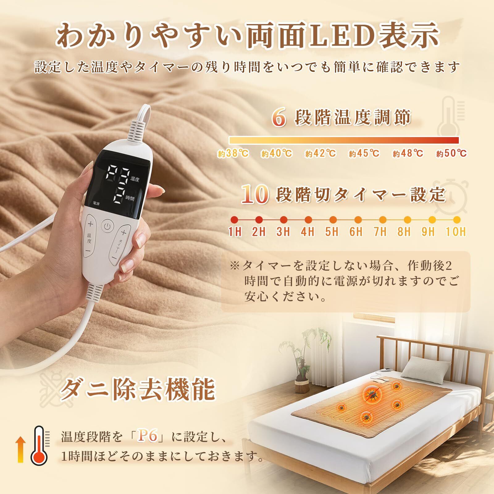 【6段階温度調整&10段階タイマー】操作はボタン一つで簡単。温度とタイマーを細かく設定できます。付属のコントローラーで、ボタン操作により温度を6段階(38℃、40℃、42℃、45℃、48℃、50℃)で調節可能です。また、タイマー機能(1時間-10時間)が付いており、お好みに合わせて設定できます。設定時間が経過すると自動で電源が切れるので、お年寄りやお子様でも安心してお使いいただけます。