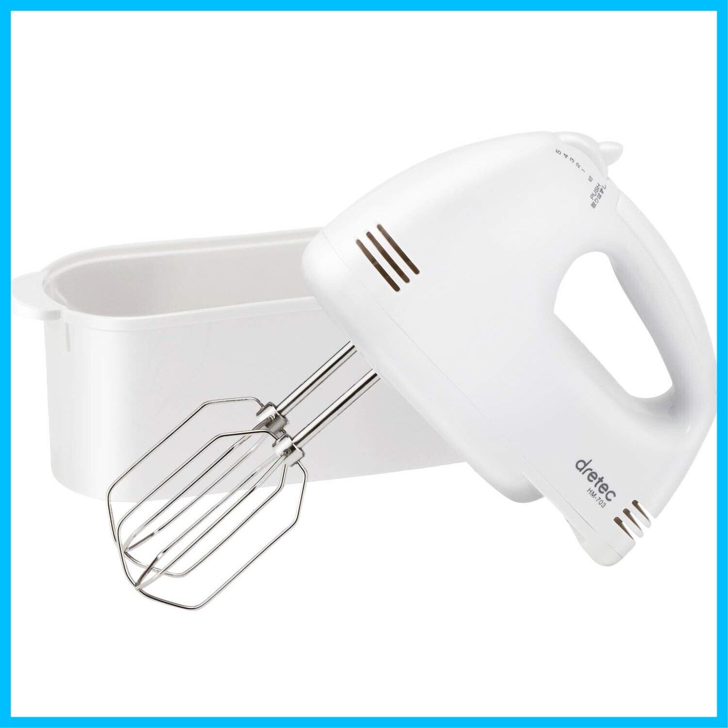 ドリテック(dretec) 740gの軽量で疲れにくいハンドミキサー スピード5段階切替/電源コード、ビーターが収納できるケース付き HM-703WT(ホワイト)