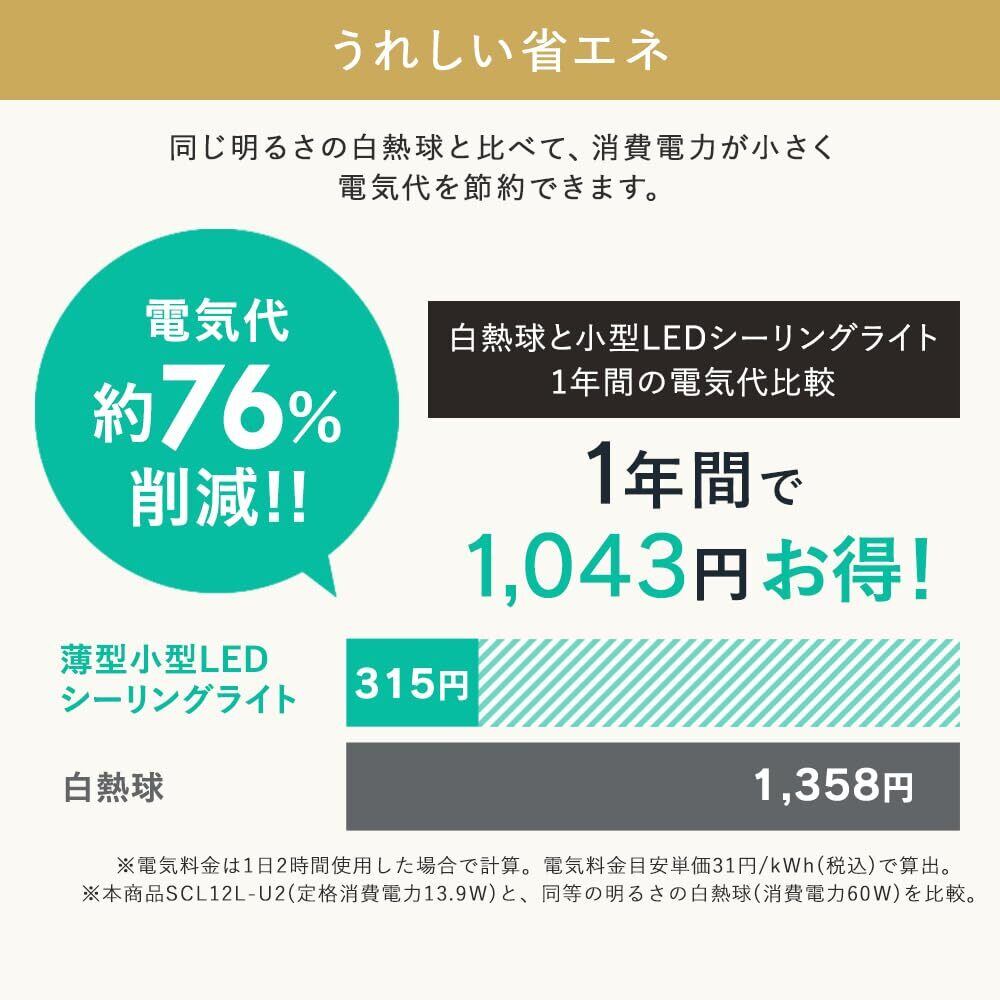 アイリスオーヤマ 小型シーリングライト 薄形タイプ 玄関 クローゼット キッチン 脱衣所 1200lm 昼光色 SCL12D-U2