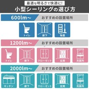 場所に合わせて選べる光色。[電球色]あたたかみのある光。リラックスしたい空間に。[昼白色]自然に近い光。目に優しく、作業部屋向き。[昼光色]爽やかですっきりとした光。細かい作業を行う空間に。